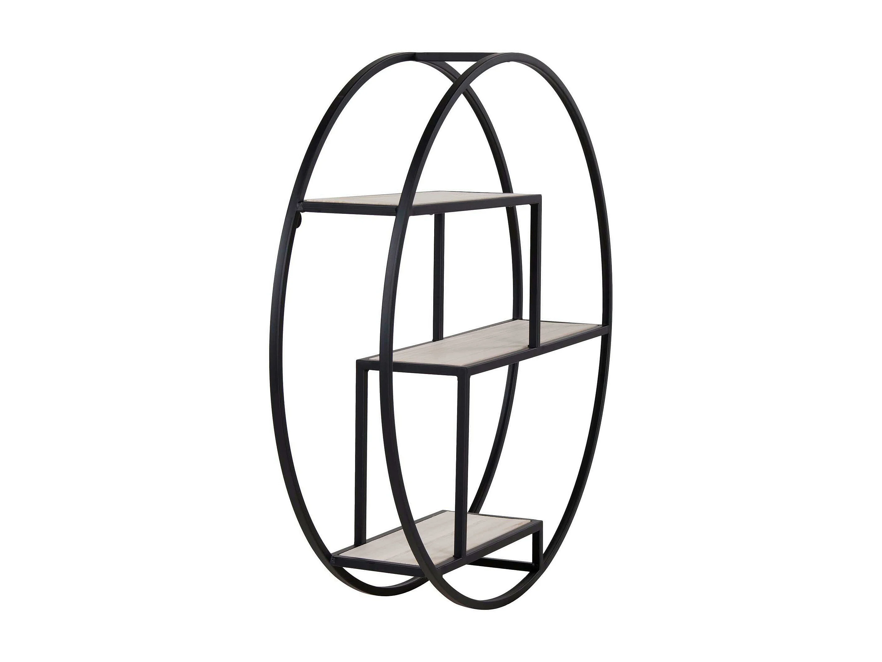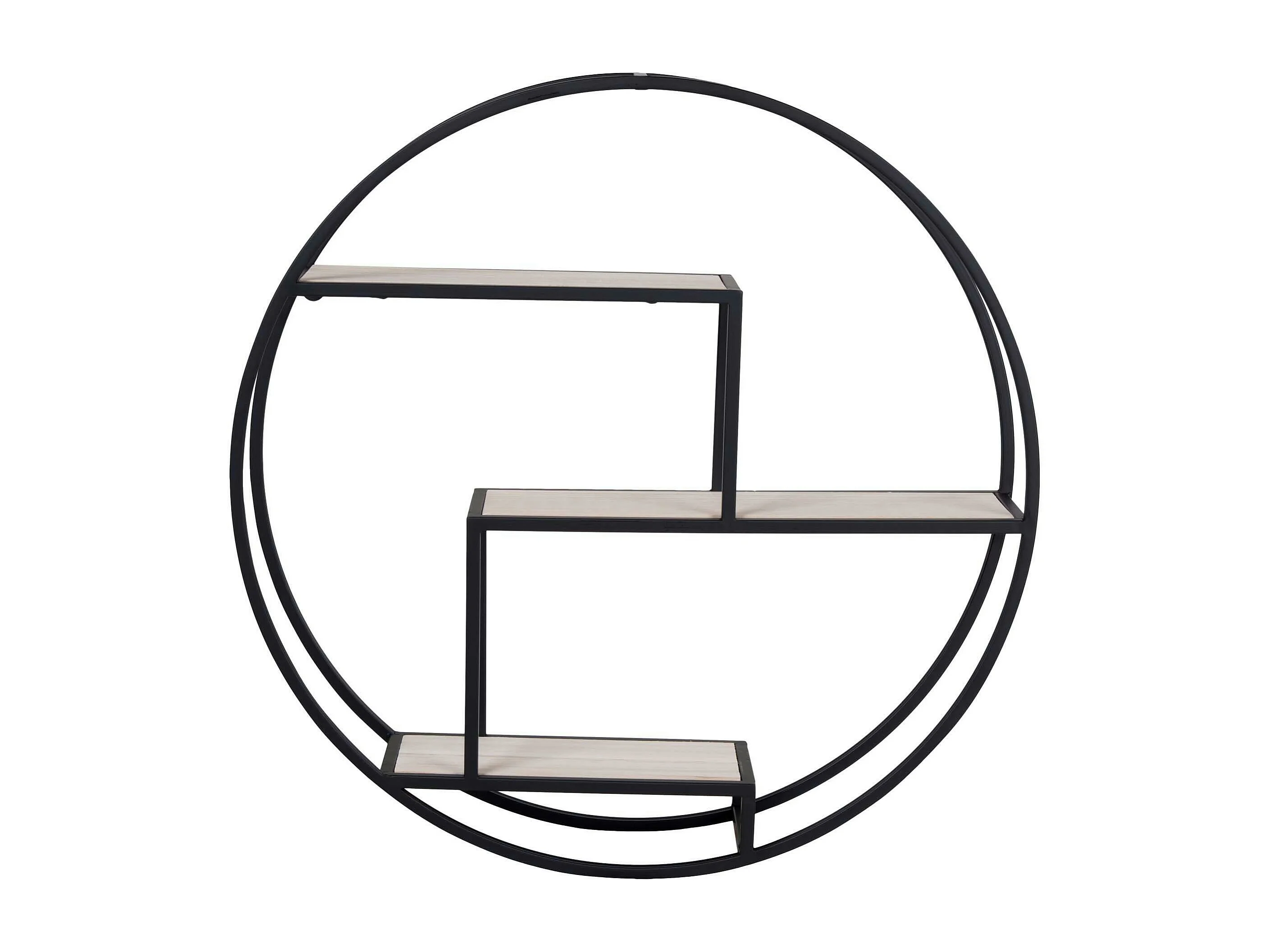 Etagère murale ronde en métal noir et bois Ø62 cm TALLINN