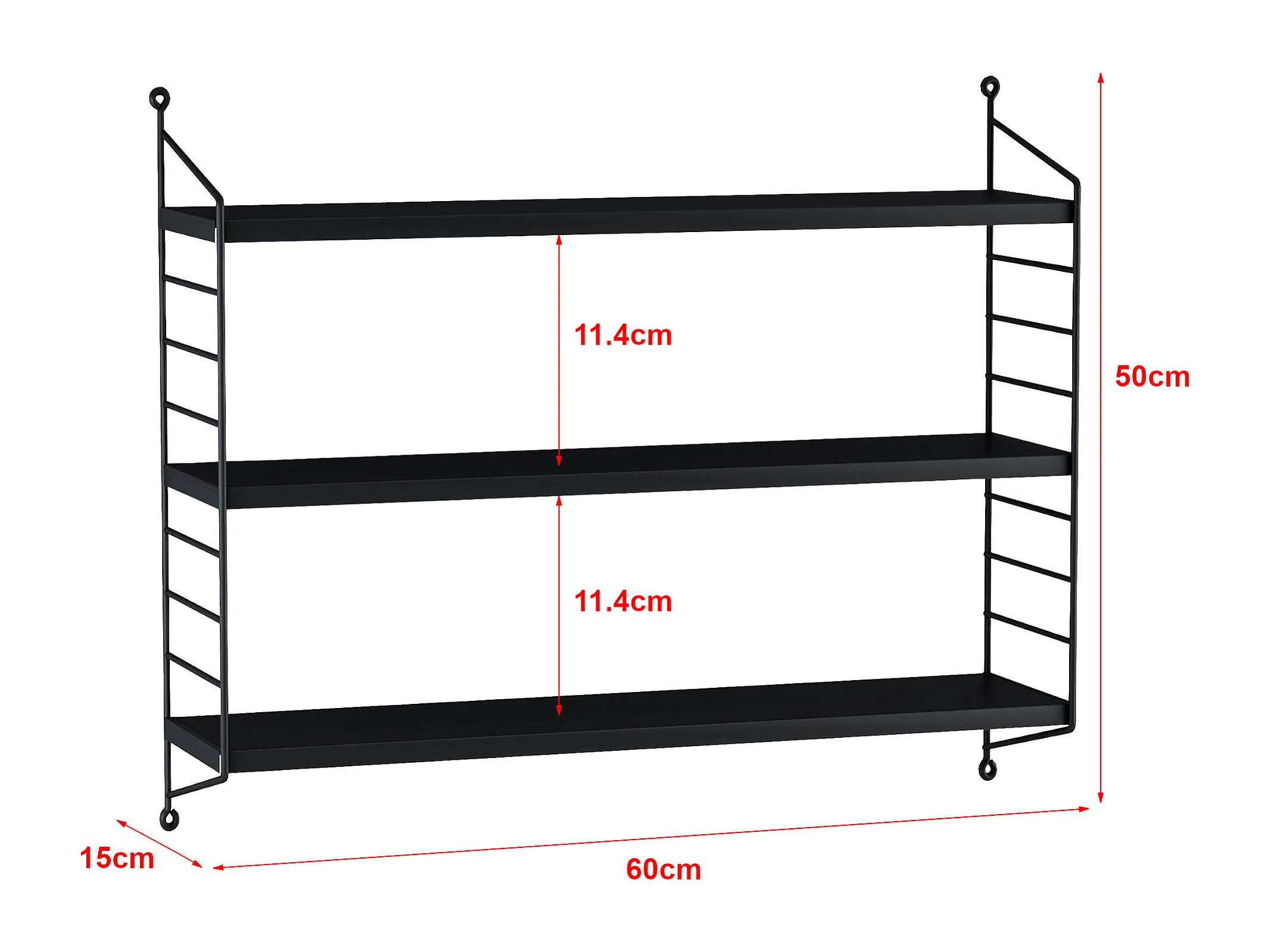 Étagère murale Strängnäs à 3 niveaux 50 x 60 x 15 cm Noir [en.casa]