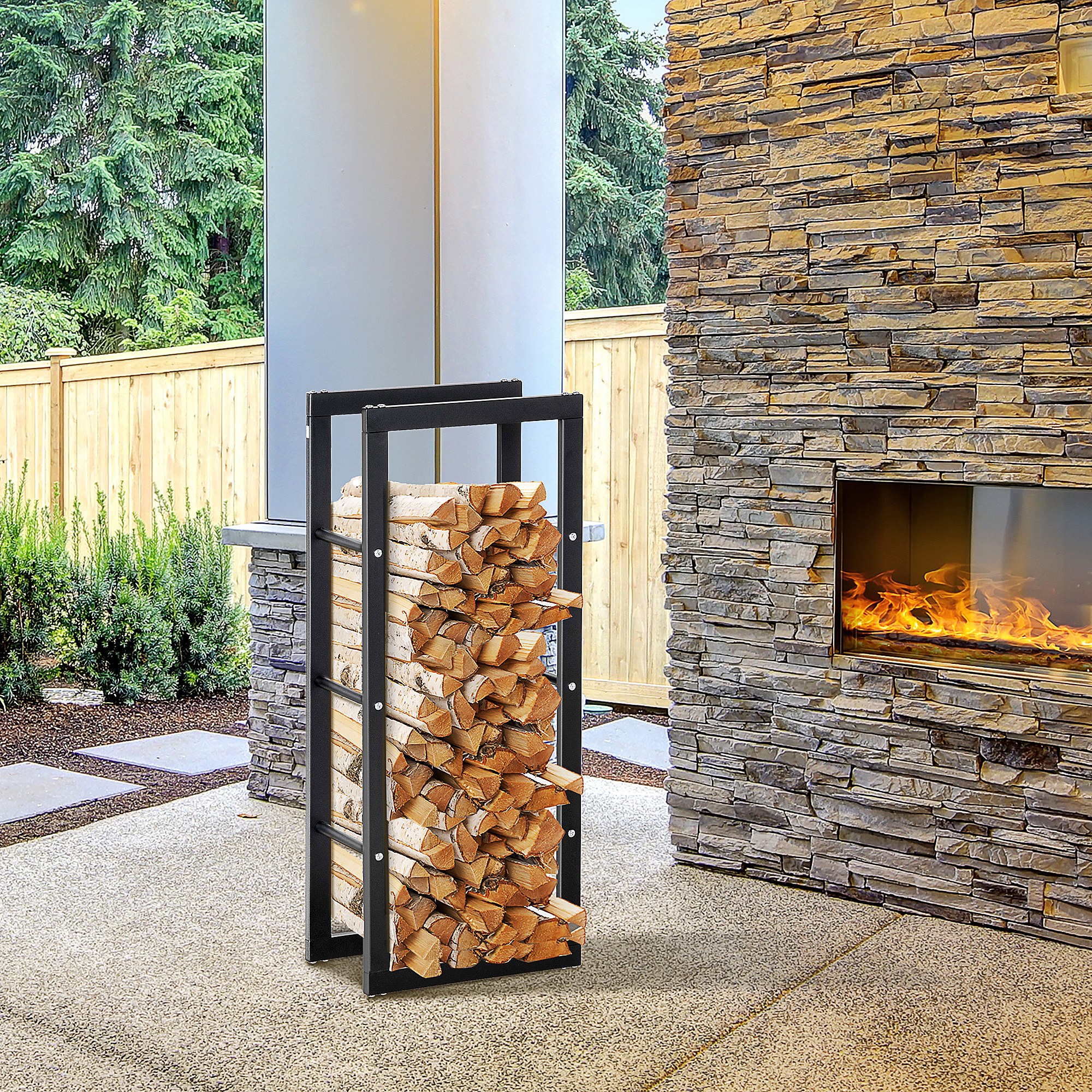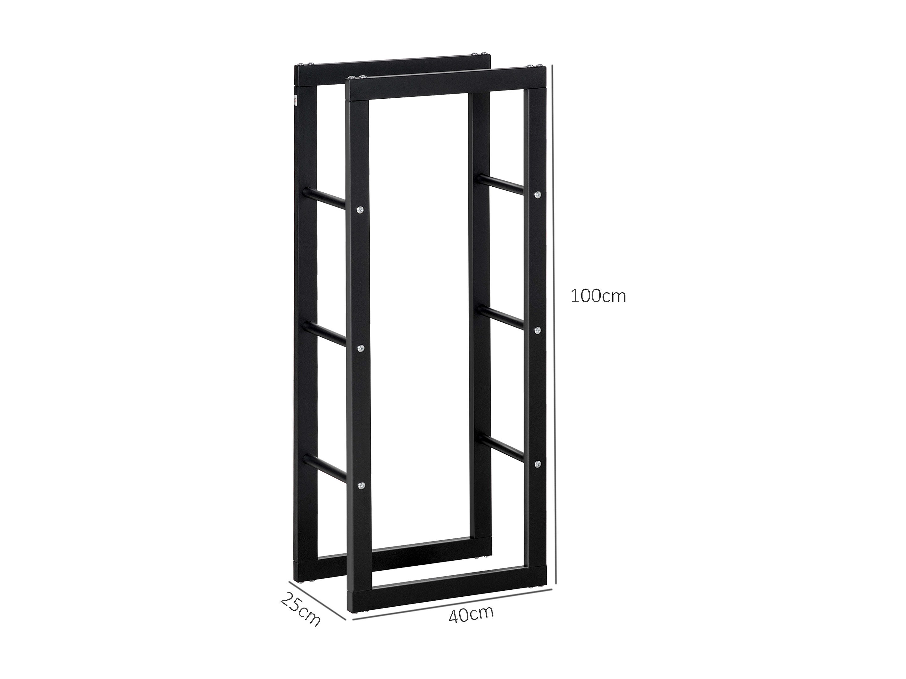 Etagère porte bois de cheminée porte-bûches design contemporain charge max. 100 Kg dim. 40L x 25l x 100H cm métal noir