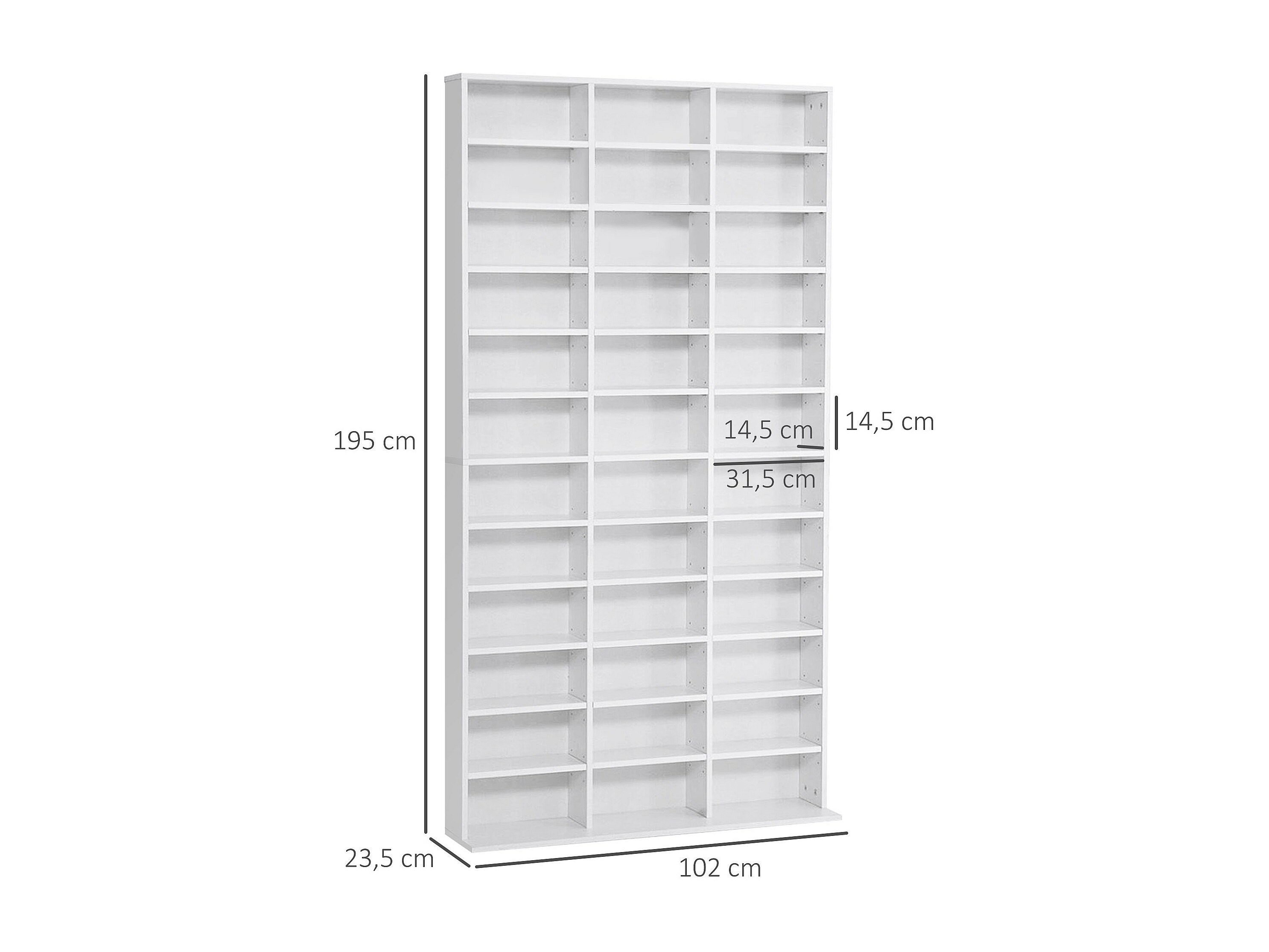 Étagère rangement CD/DVD meuble de rangement pour 1116 CDs 33 compartiments réglables en hauteur 102 x 24 x 195 cm blanc