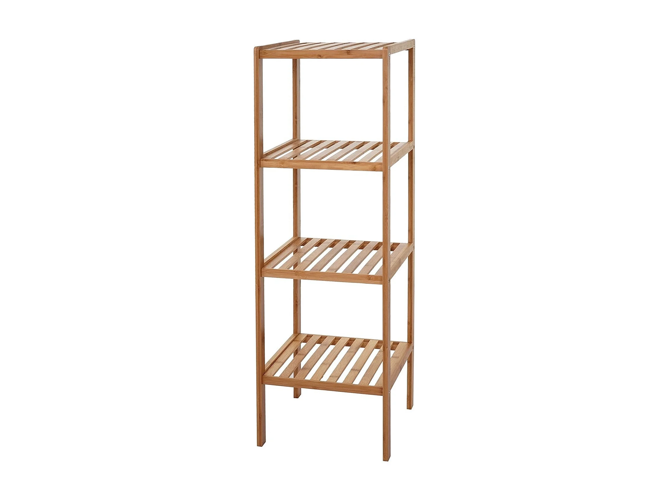 Meuble de salle de bain en bambou, avec 3 étagères ouvertes, porte à lamelles, bois naturel (50x29x140 cm)