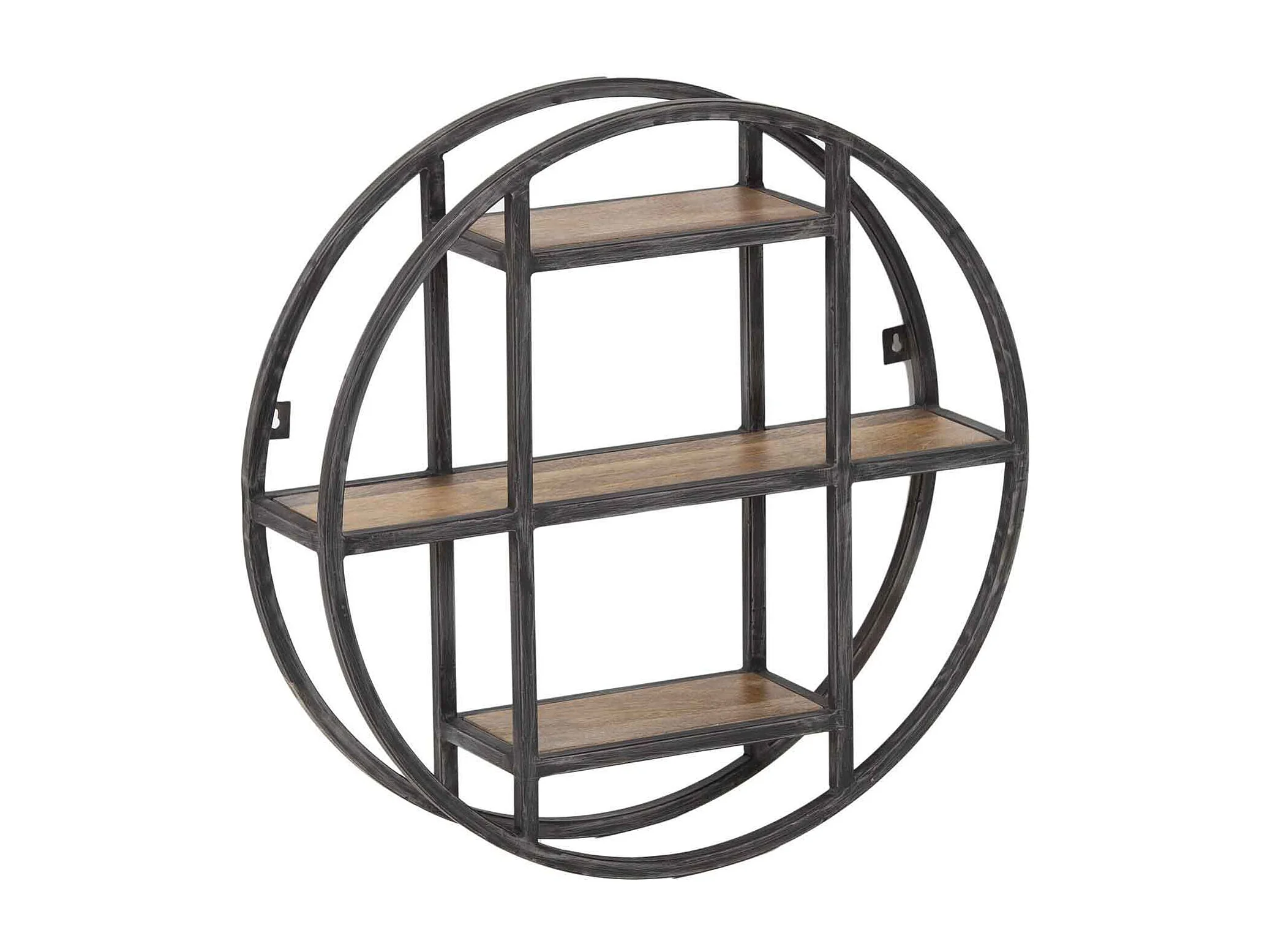 Etagère murale ronde en métal noir et bois Ø62 cm TALLINN