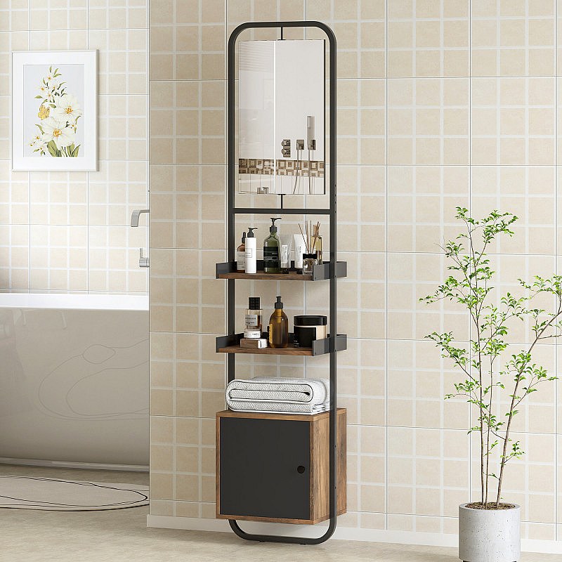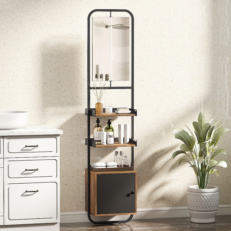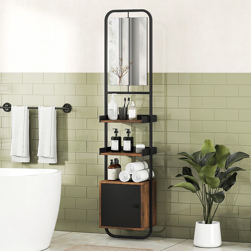 Étagère salle de bain design vintage SILVANO effet bois noir