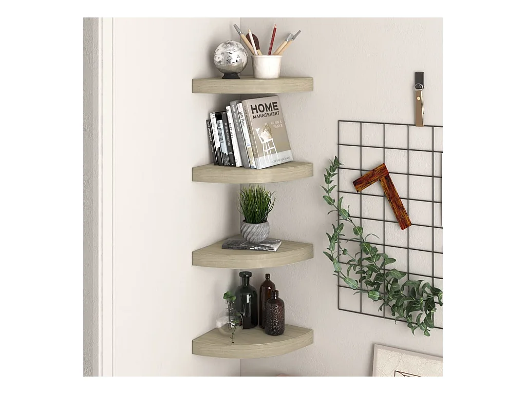 Étagères d'angle flottantes 4 pcs chêne 25x25x3,8 cm MDF