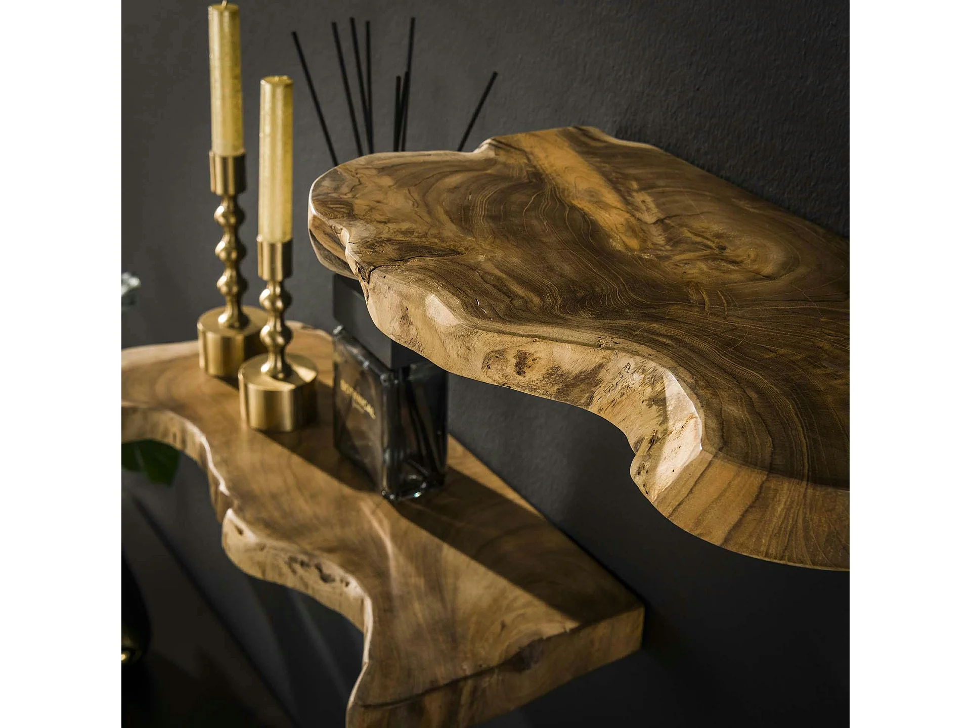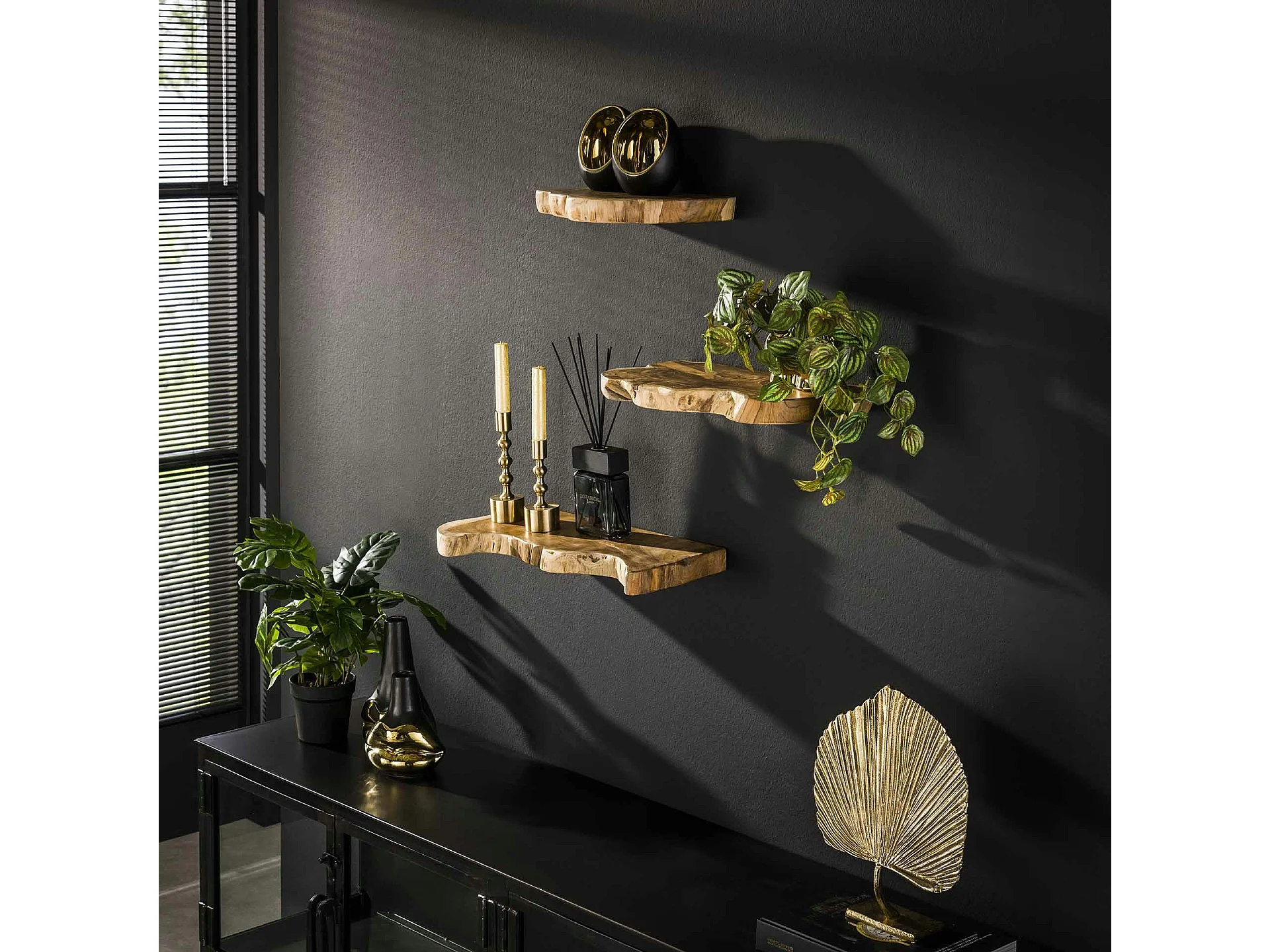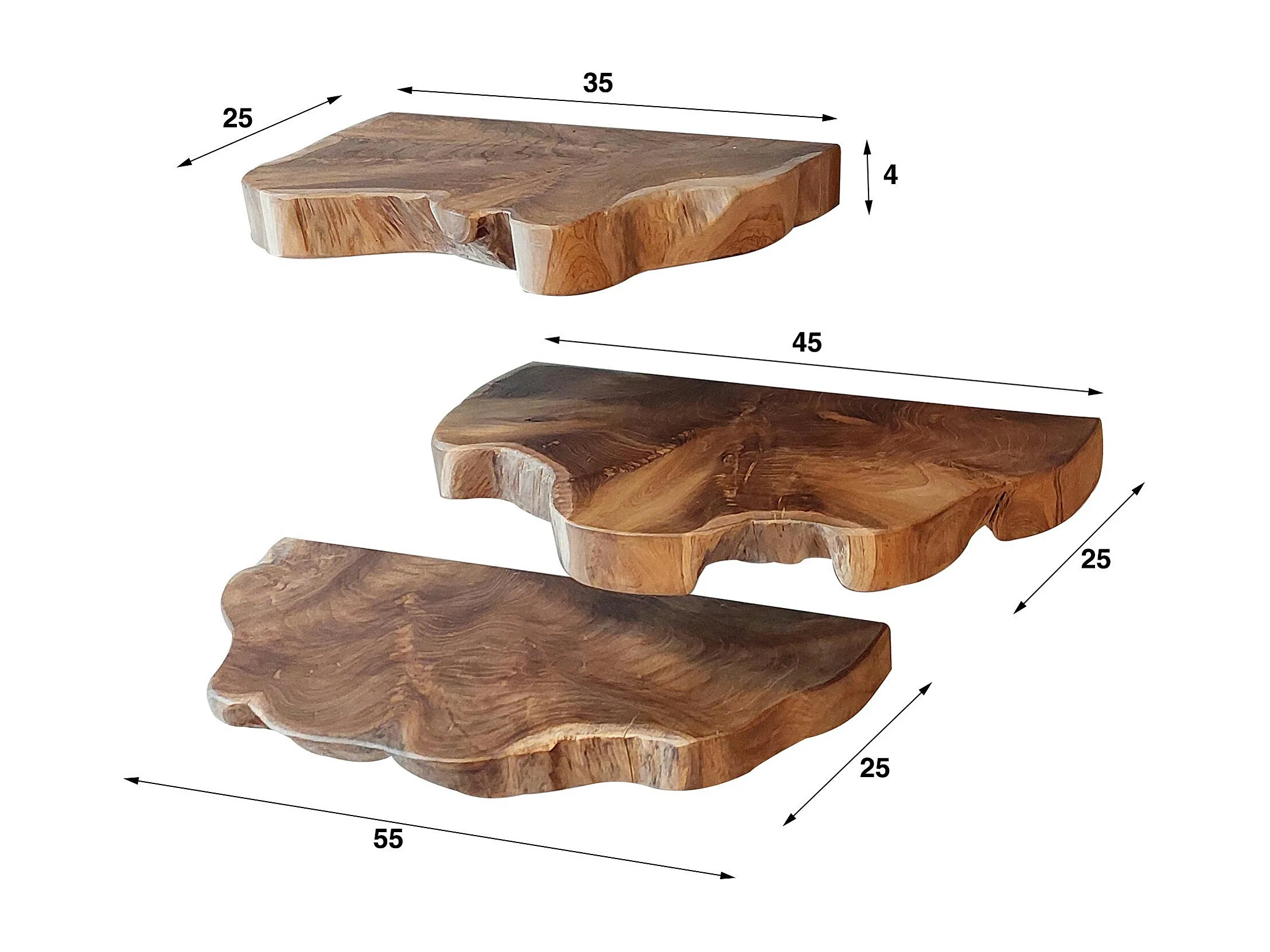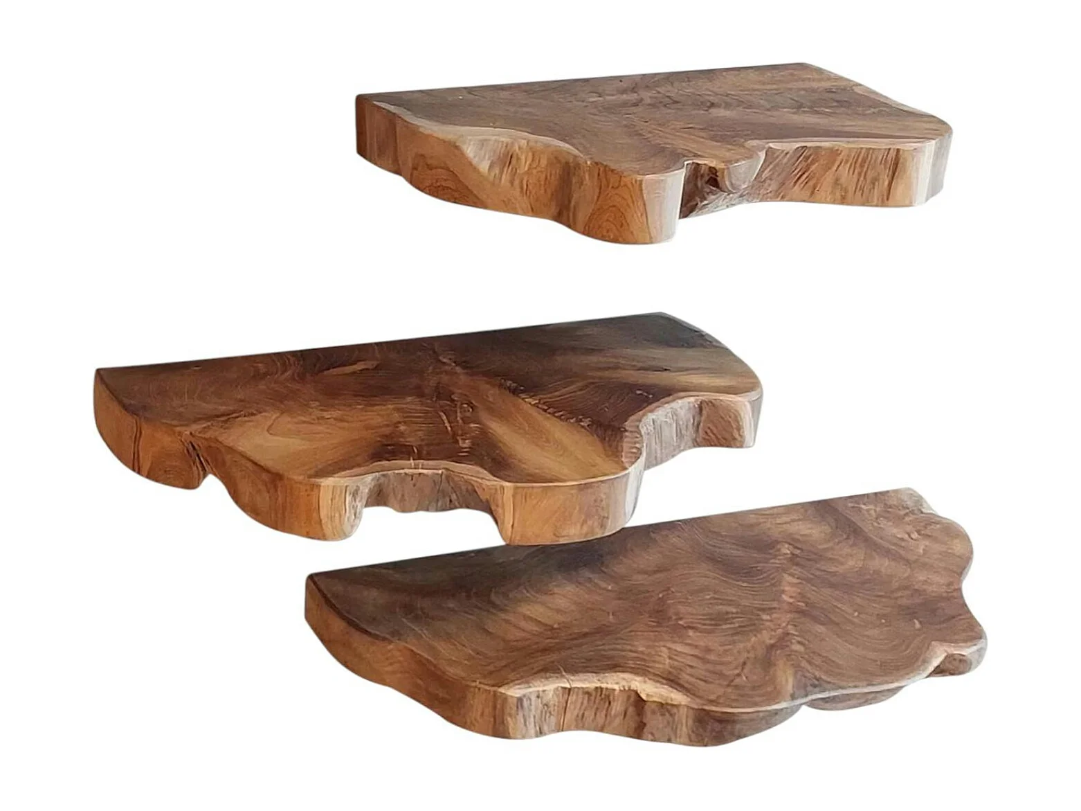 Etagères murales en teck recyclé avec bords naturels (lot de 3)