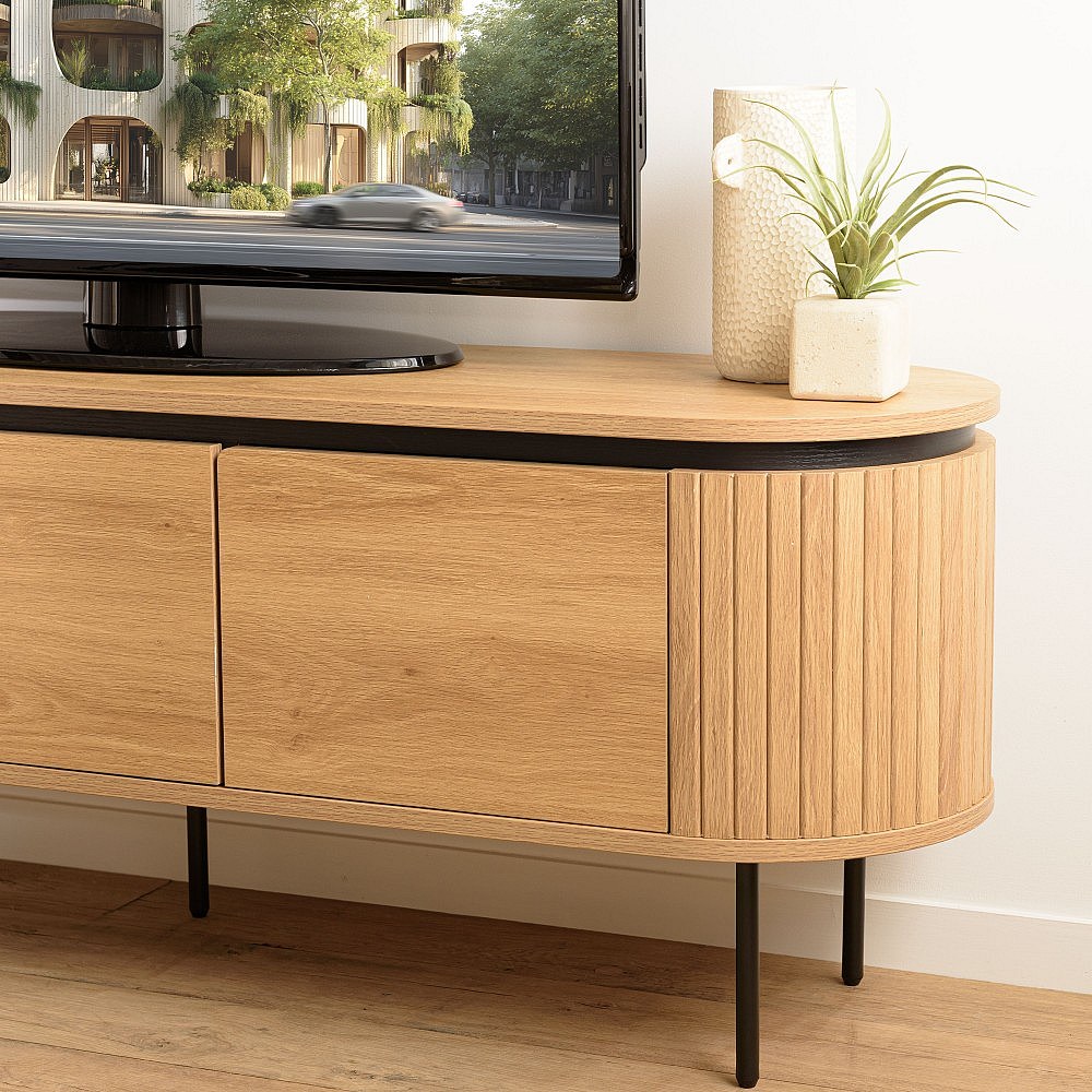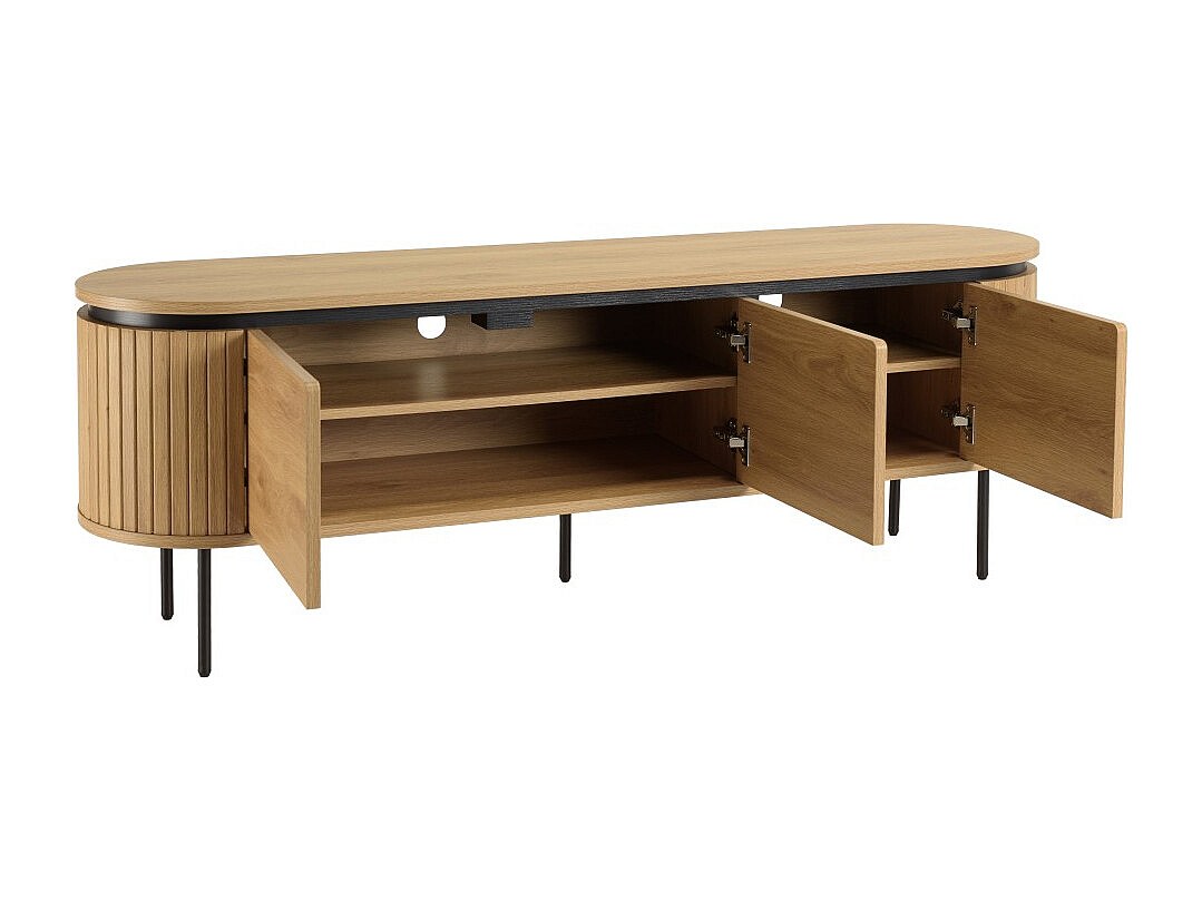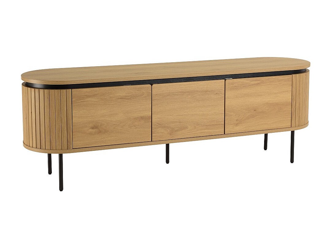 ETHAN - Meuble TV arrondi bois couleur naturelle 3 portes