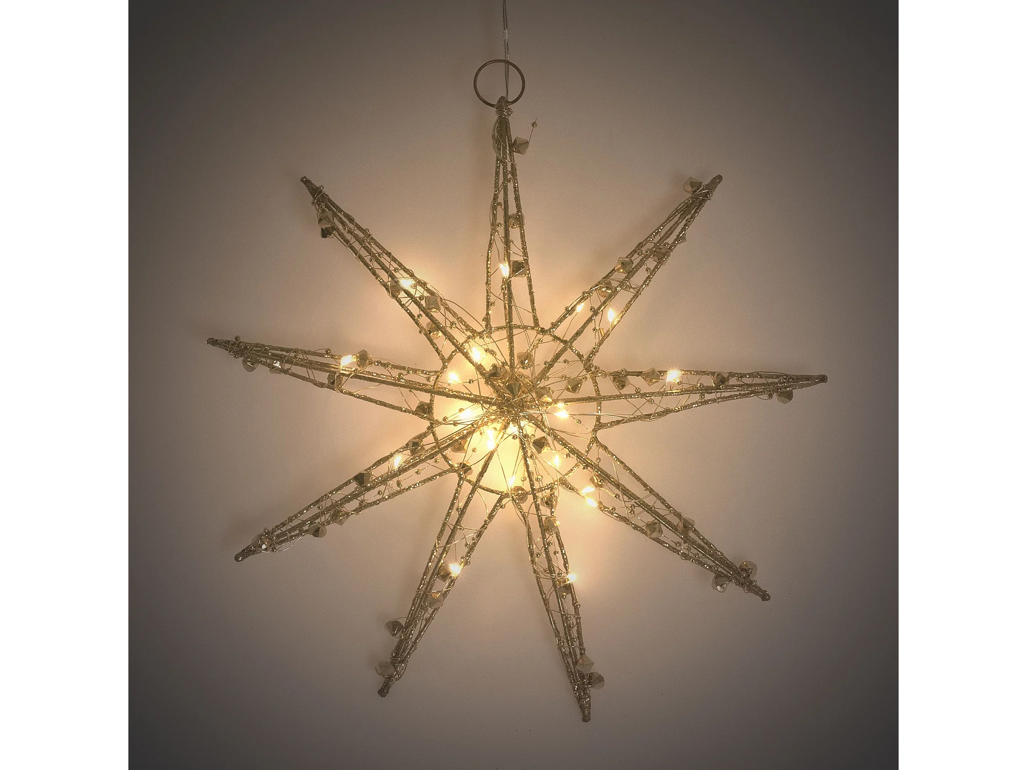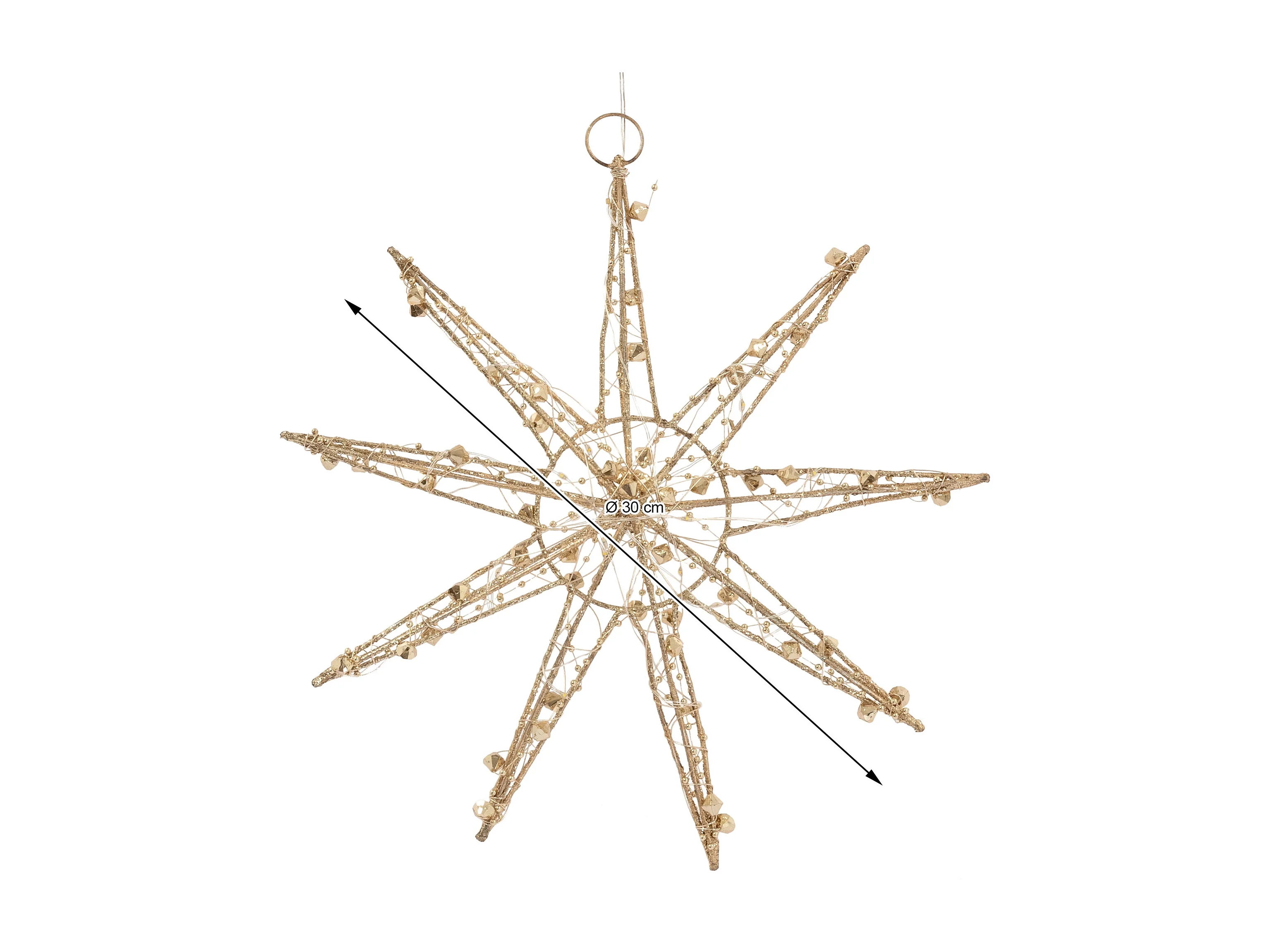 Étoile de noël décorative à suspendre 30 cm dorée avec 30 led blanc chaud en métal avec éclairage et minuterie à piles ornement de noël pour fenêtre