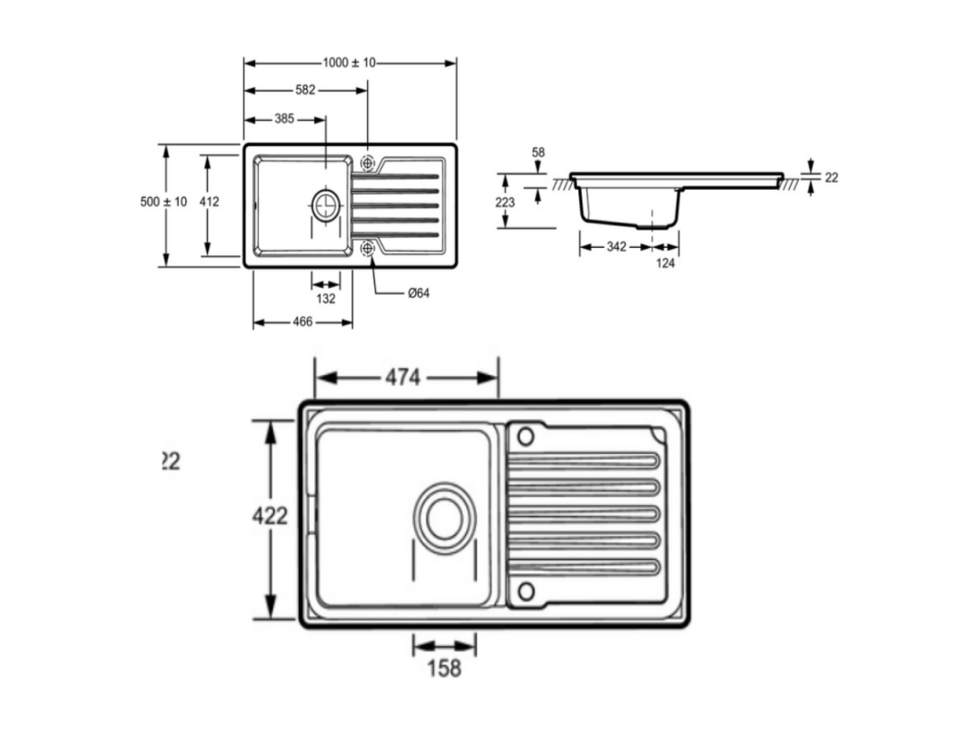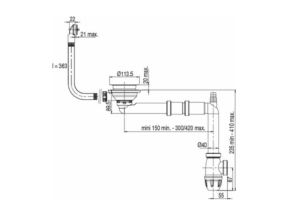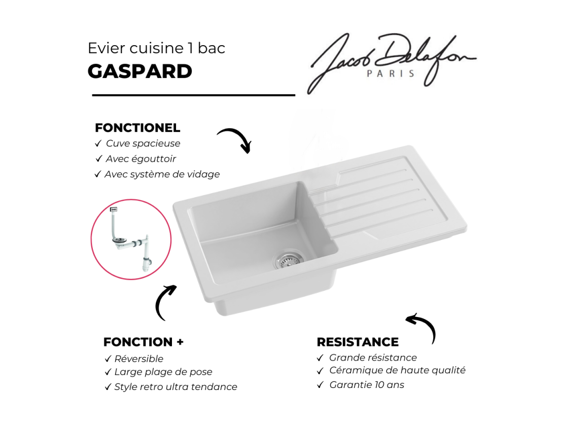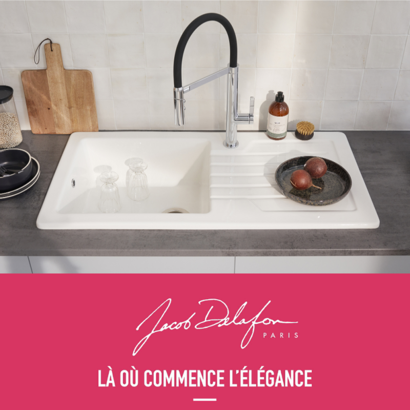 Evier à encastrer 1 bac JACOB DELAFON Gaspard avec système de vidage