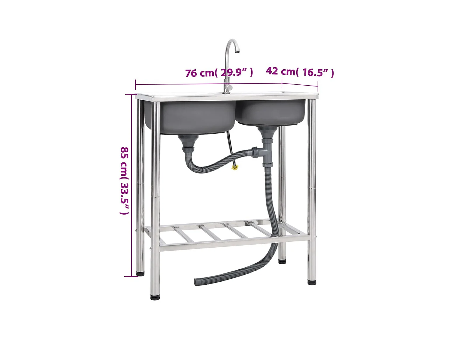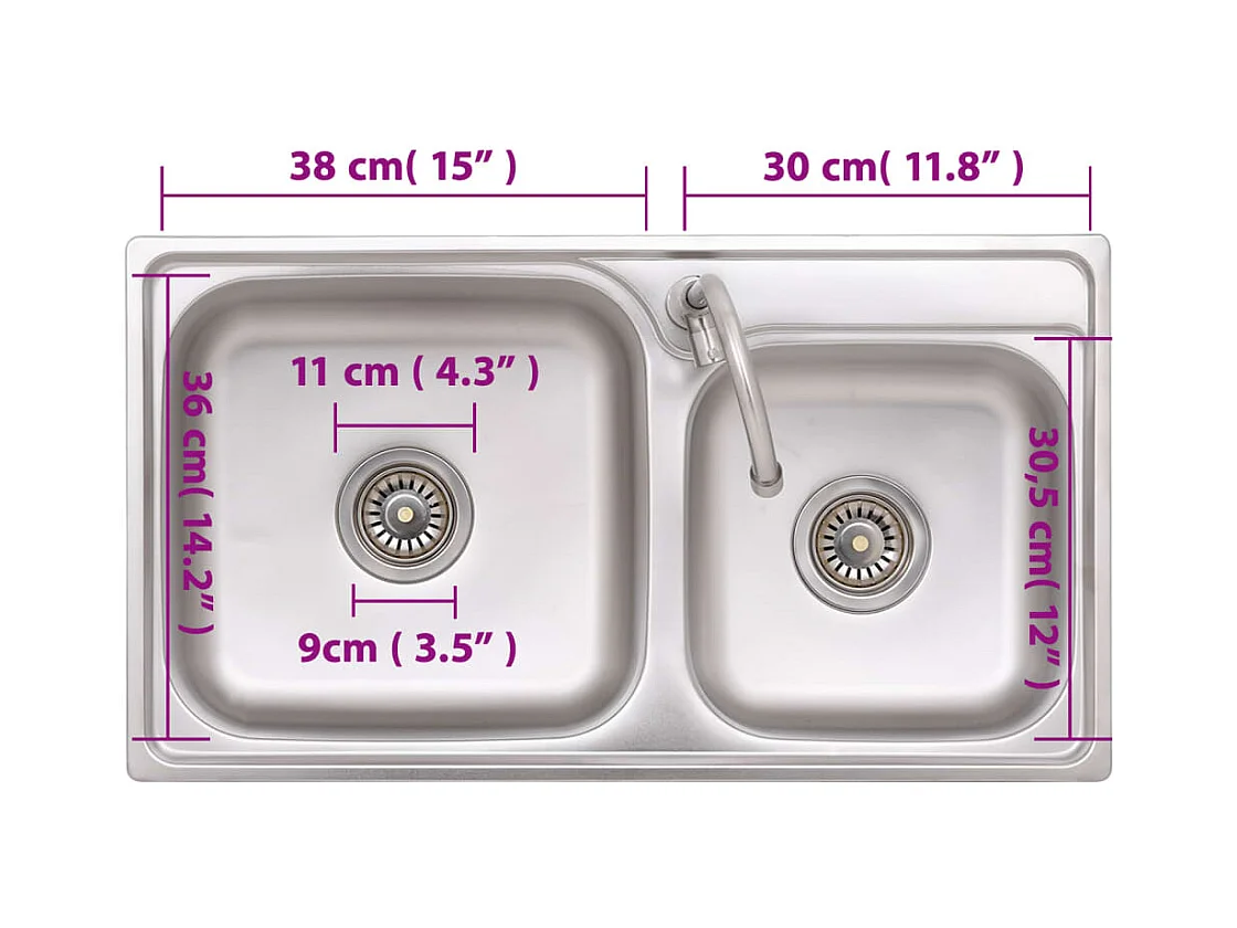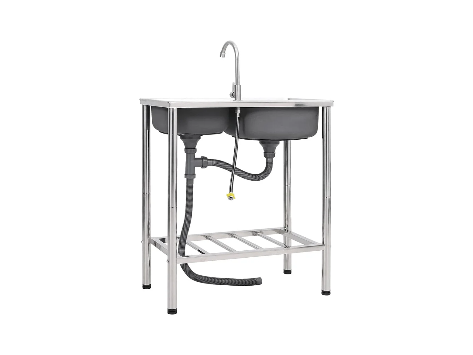 évier de camping Double lavabo avec robinet Acier inoxydable