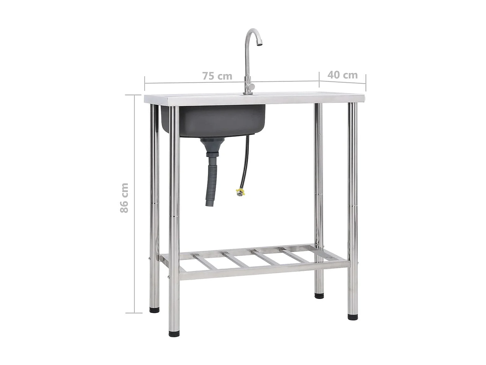 Évier de camping seul argenté 75 x 40 x 15 cm 02_0002438
