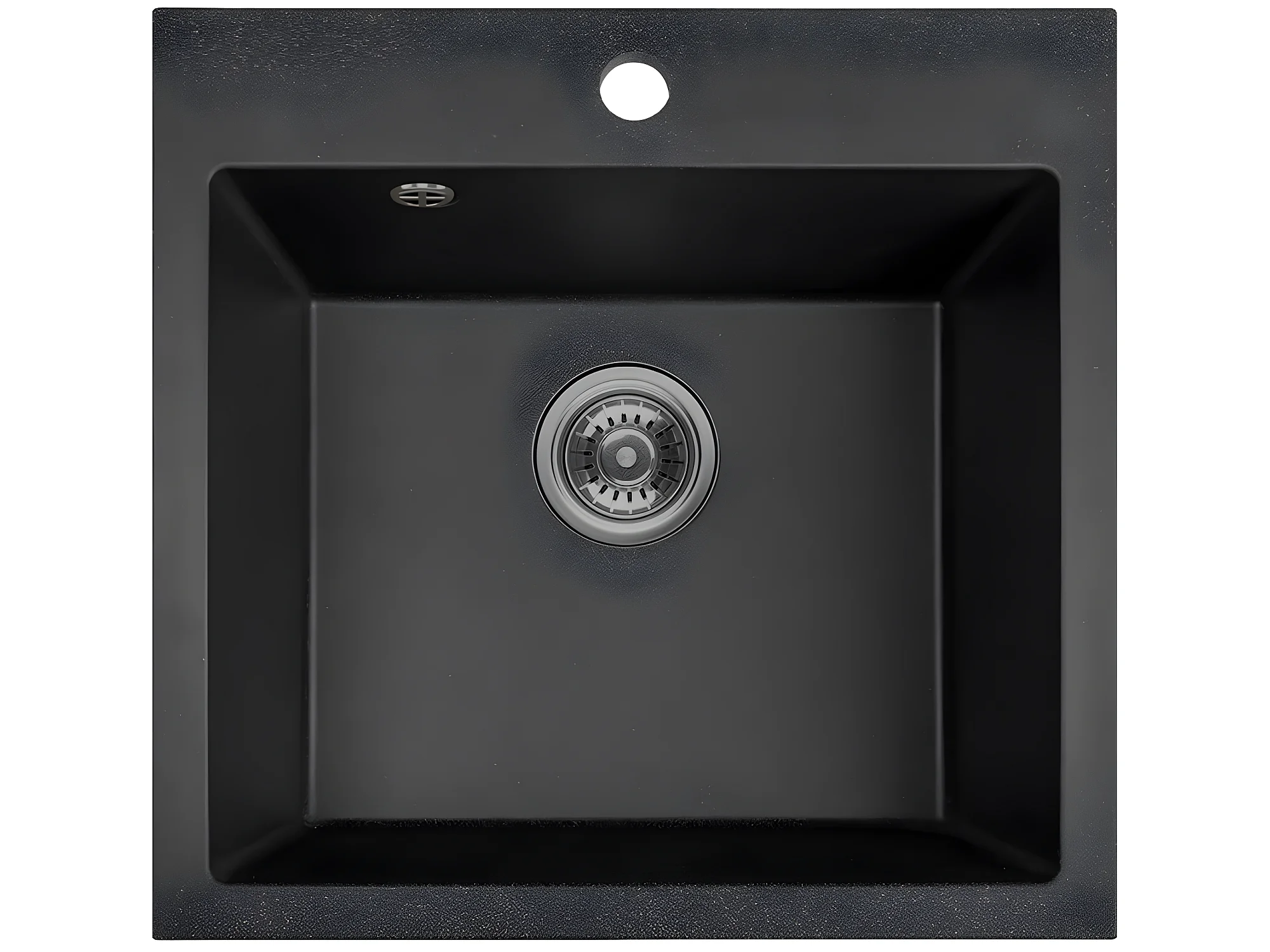 Evier de cuisine en granit noir, ALENA, 1 bac, 49x49