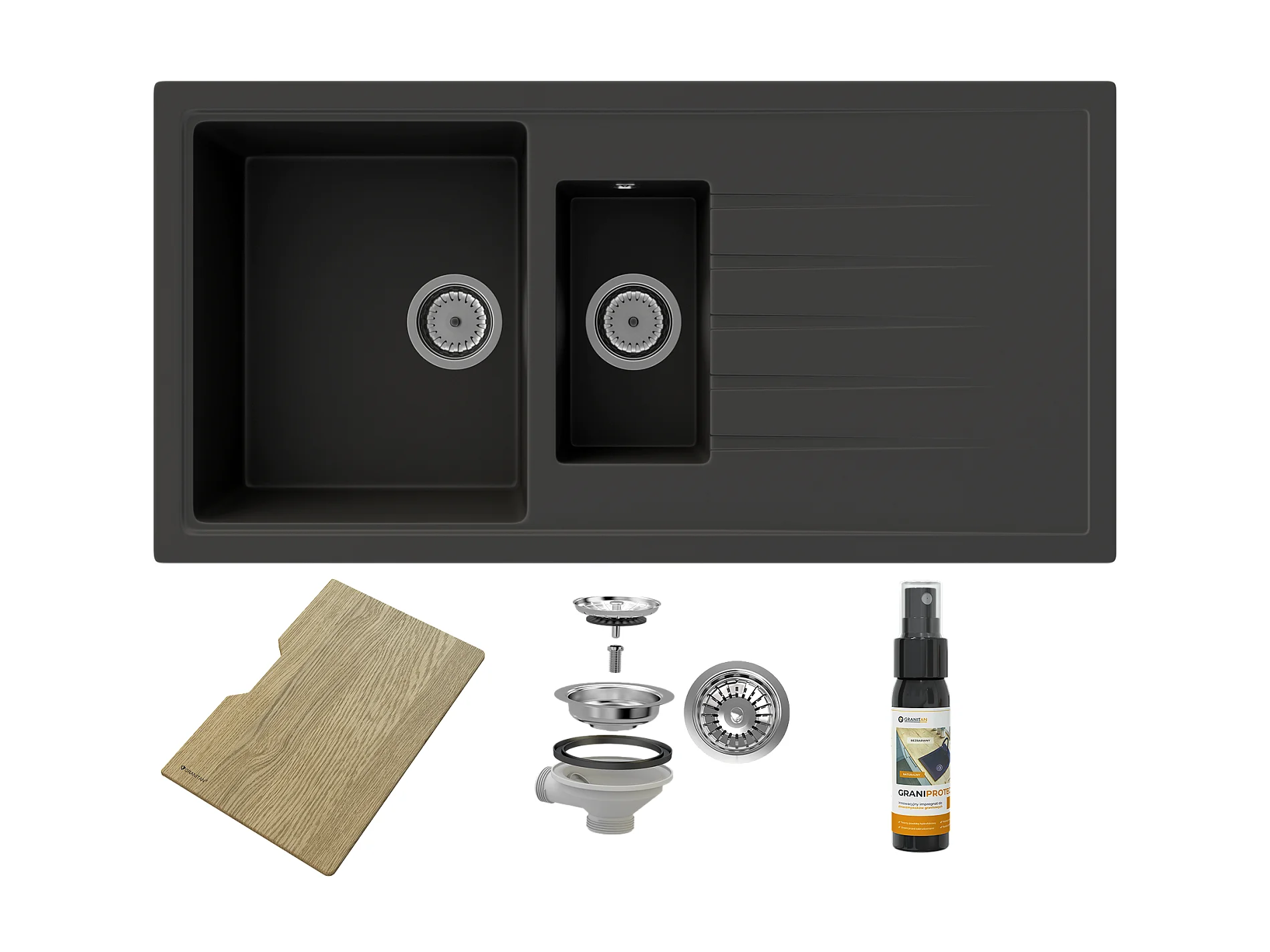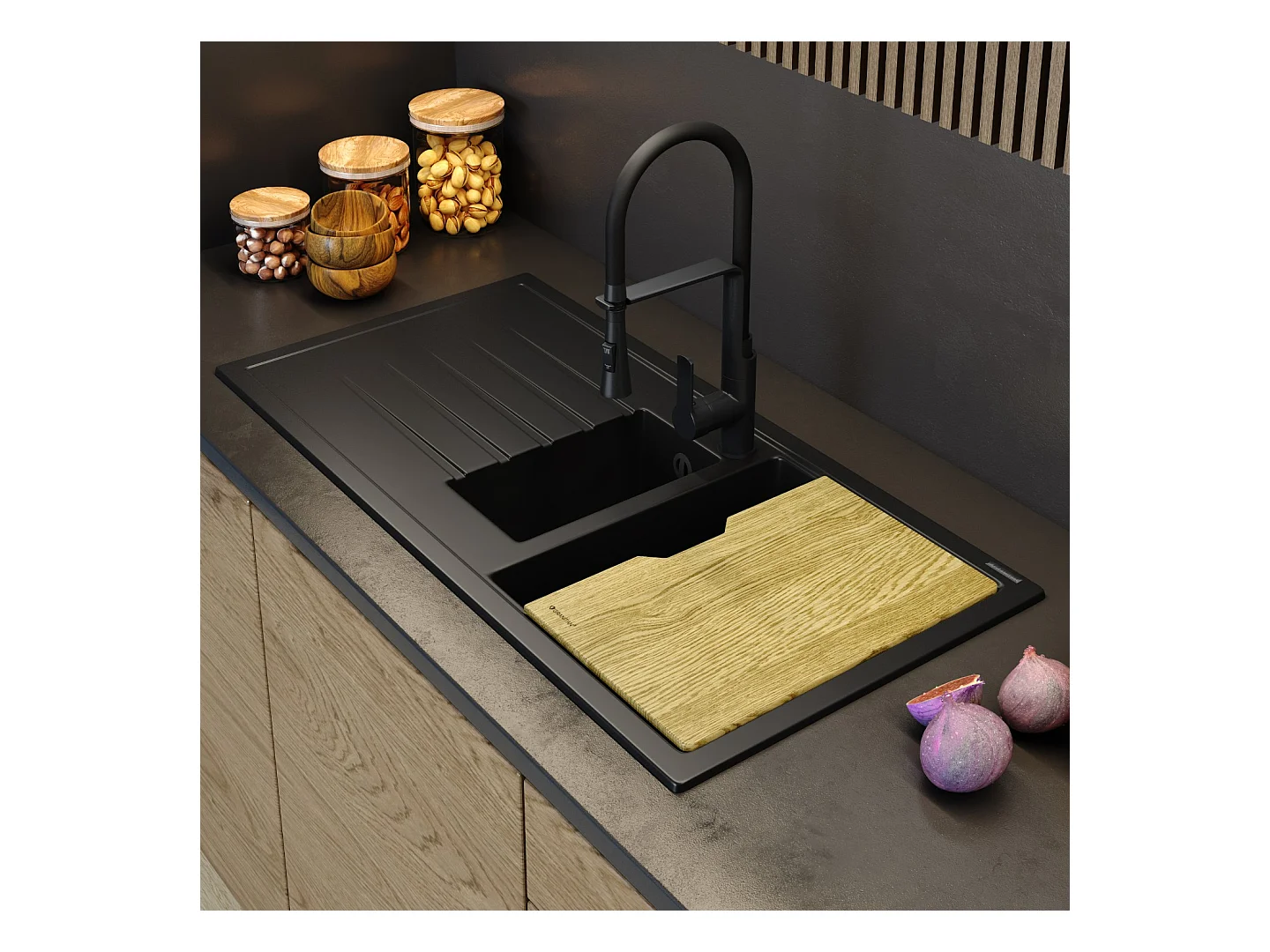 ÉVIER EN GRANIT 1,5K PANNEAU DE CHÊNE IMPRÉGNÉ SOLARIS