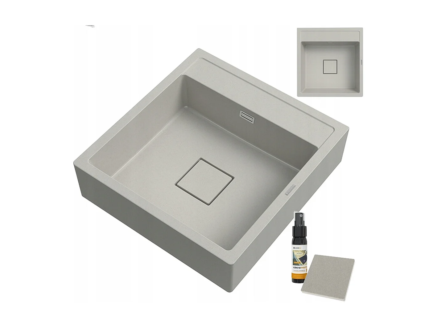 ÉVIER EN GRANIT À UN BAC ÉVIER DE FERME SCANDINAVE BEIGE SIPHON TAVO