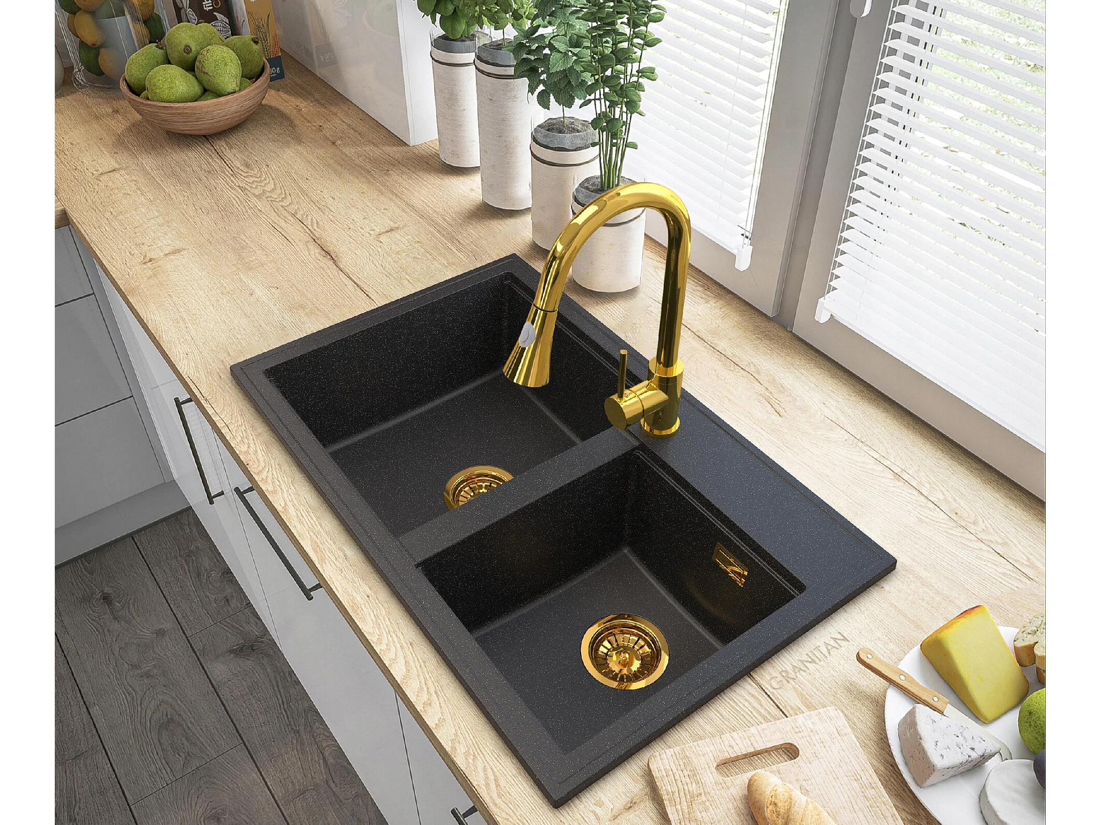 ÉVIER EN GRANIT GOLDEN HECTOR SIPHON ROBINET GOLD