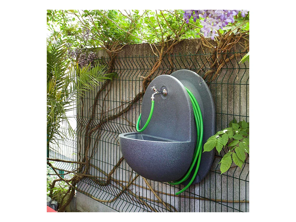 Evier extérieur en polyéthylène avec porte tuyau d'arrosage intégré Mars Sans équipement