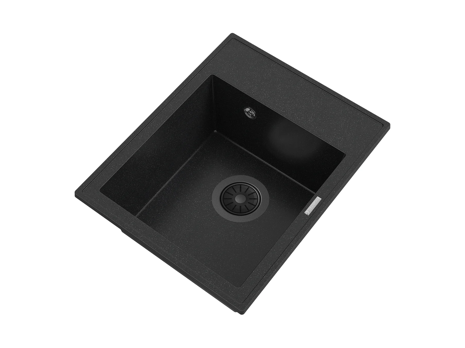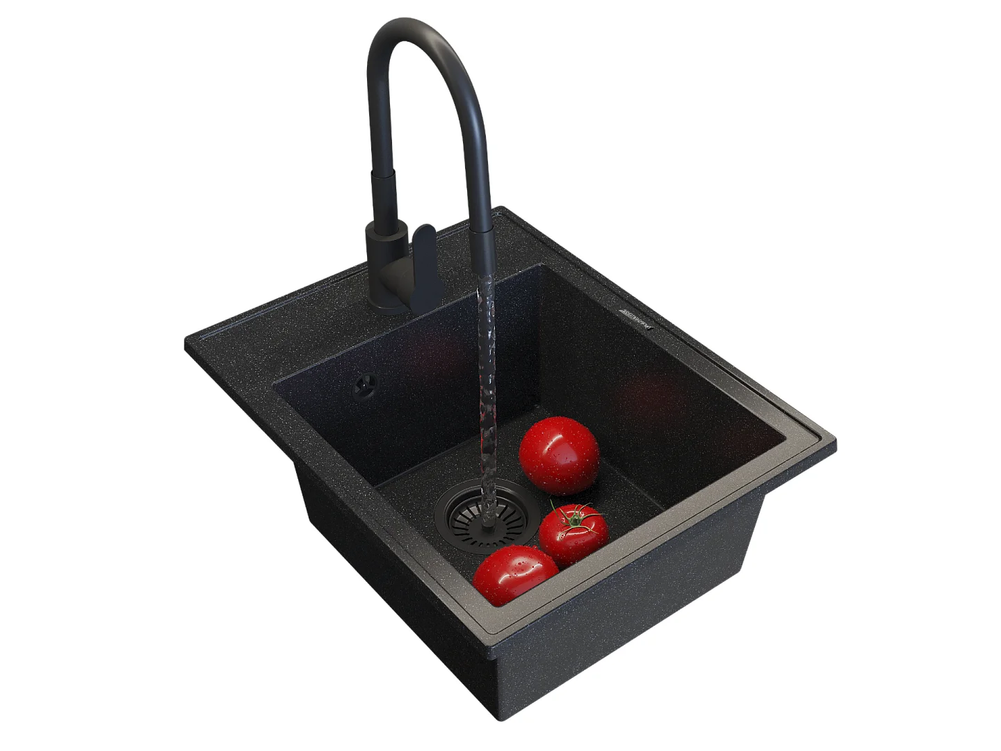 ÉVIER MONOCUVE EN GRANIT ROBINETTERIE À POINTS NOIRS SIPHON NERO