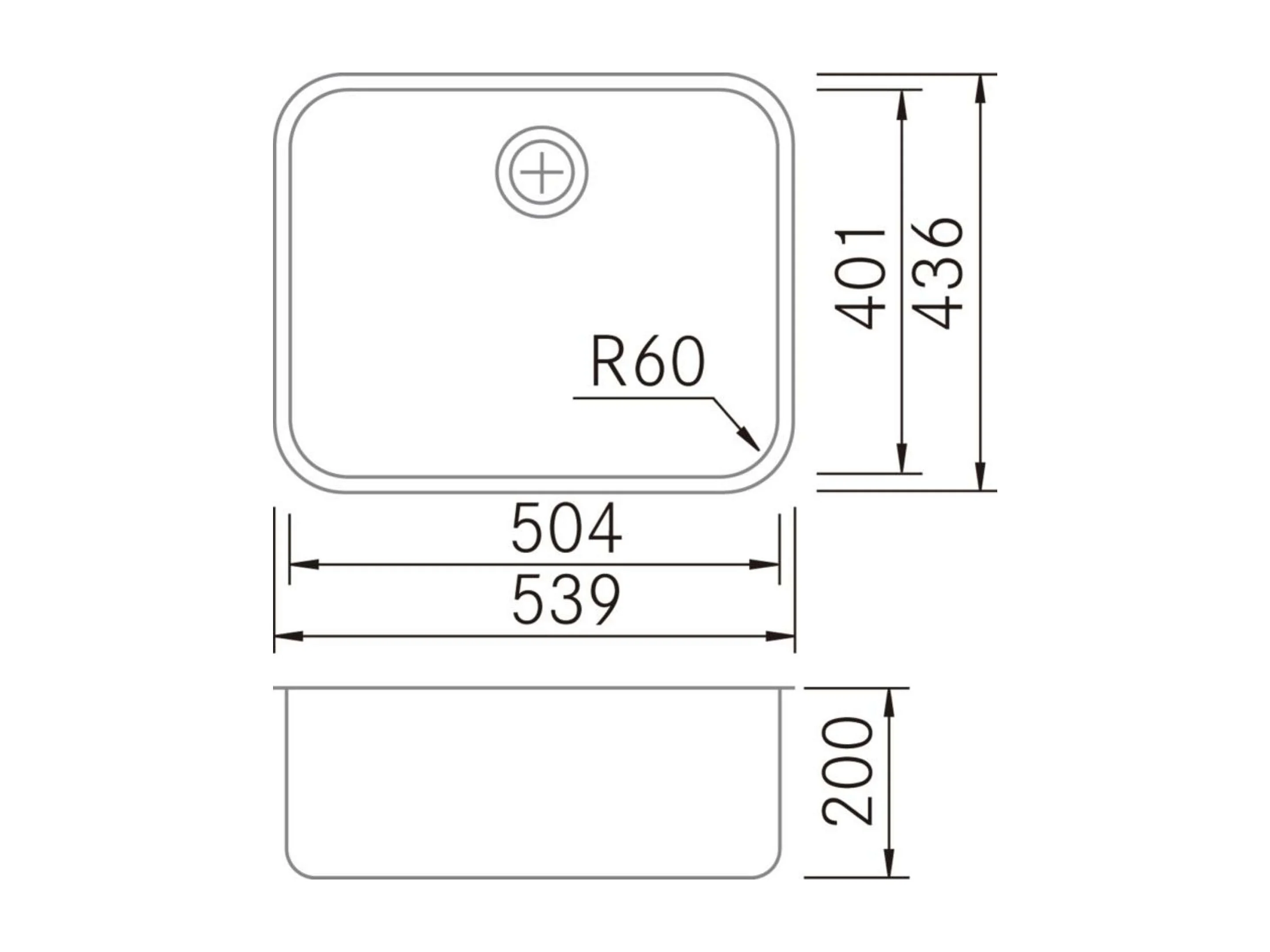 Évier sous-plan 1 Cuve 50x40x18cm R60mm - Acier inox 18/10 - BM Top FRÉCAN