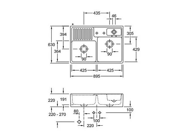 Evier timbre d'office VILLEROY ET BOCH Tradition 2 bacs 89,5 x 63 céramique vidage auto blanc + Cache bonde acier massif