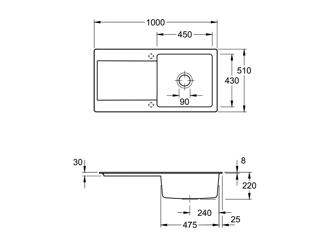 Evier VILLEROY ET BOCH Siluet 60 Fossile CeramicPlus avec vidage automatique