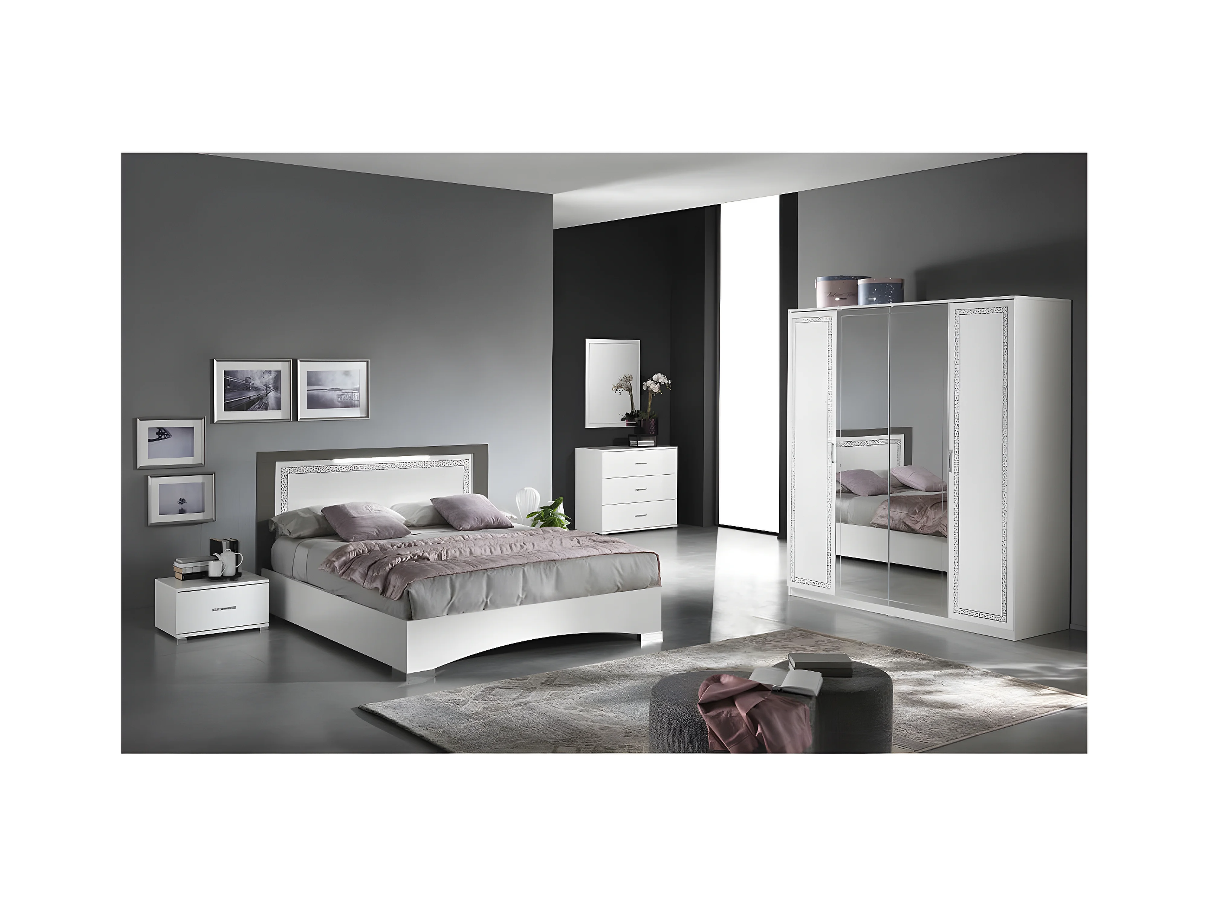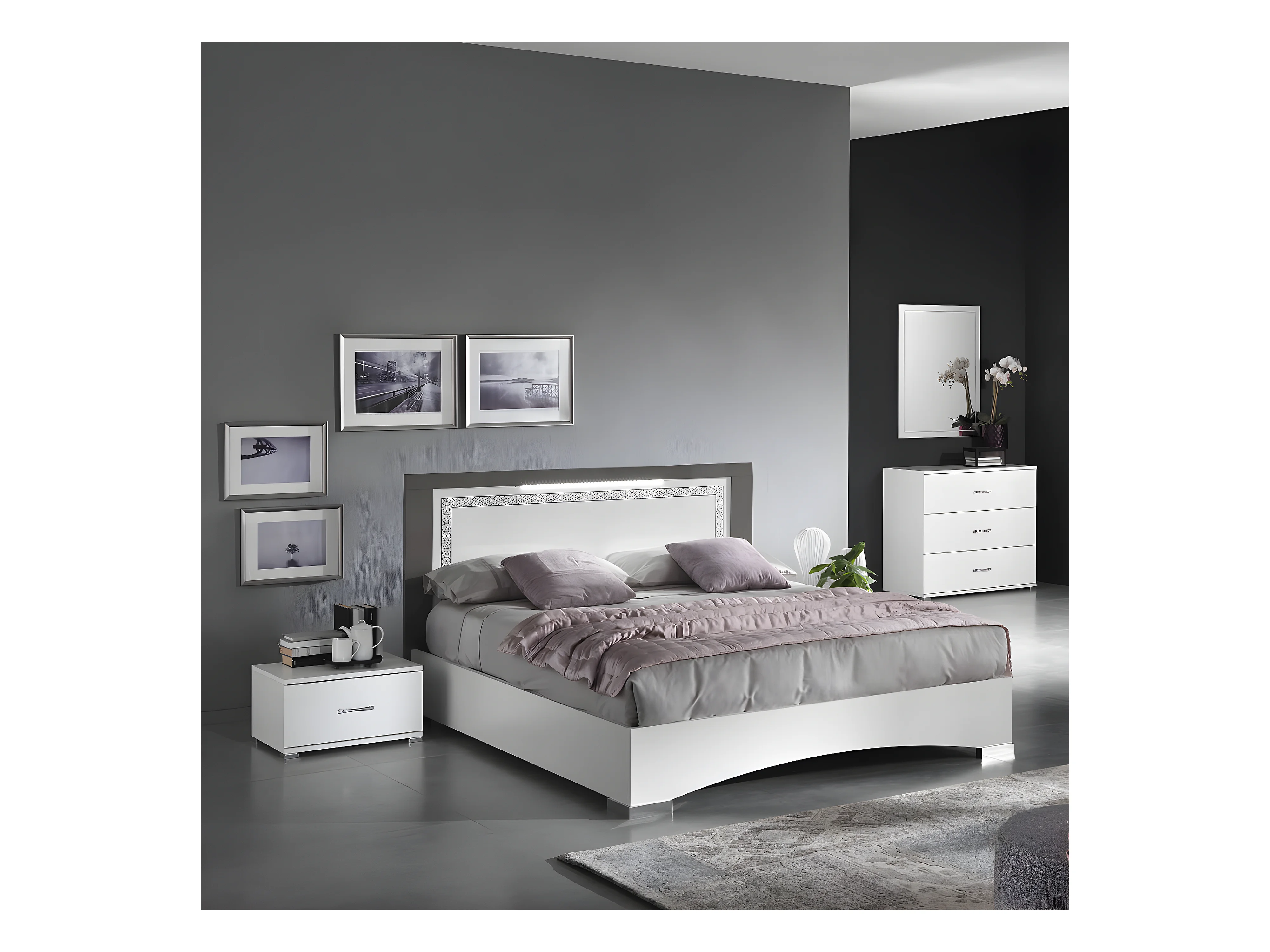 FADILY - Lit 160x200cm Laquée Blanc avec Eclairage Led