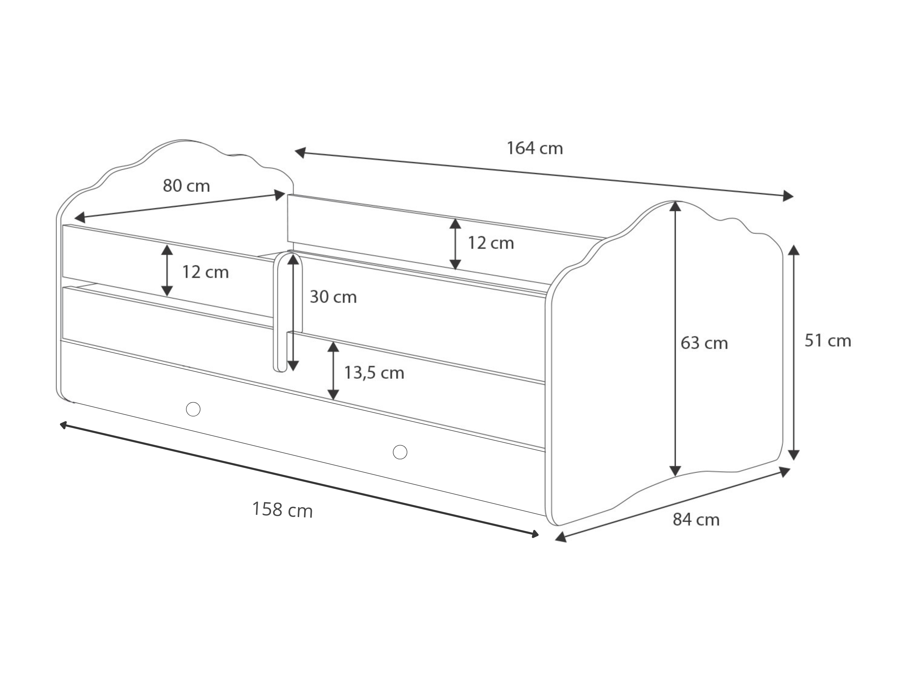 Fala - lit simple 160x80 blanc, dans un ensemble avec un tiroir, une balustrade, un matelas et un cadre