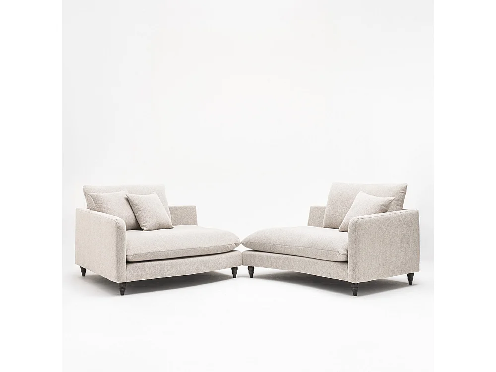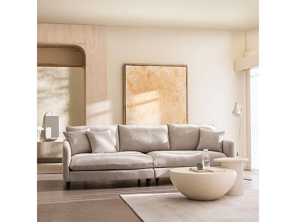 Farrah - Canapé d'angle gauche convertible 5 places en tissu pieds tournés - Naturel chiné