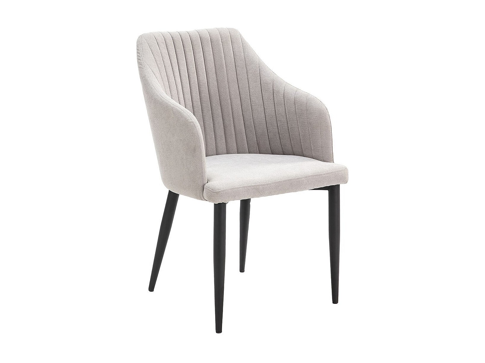 FASCA - Lot de 2 Fauteuils Tissu Gris Clair Surpiqures Verticales Pieds Métal Noir