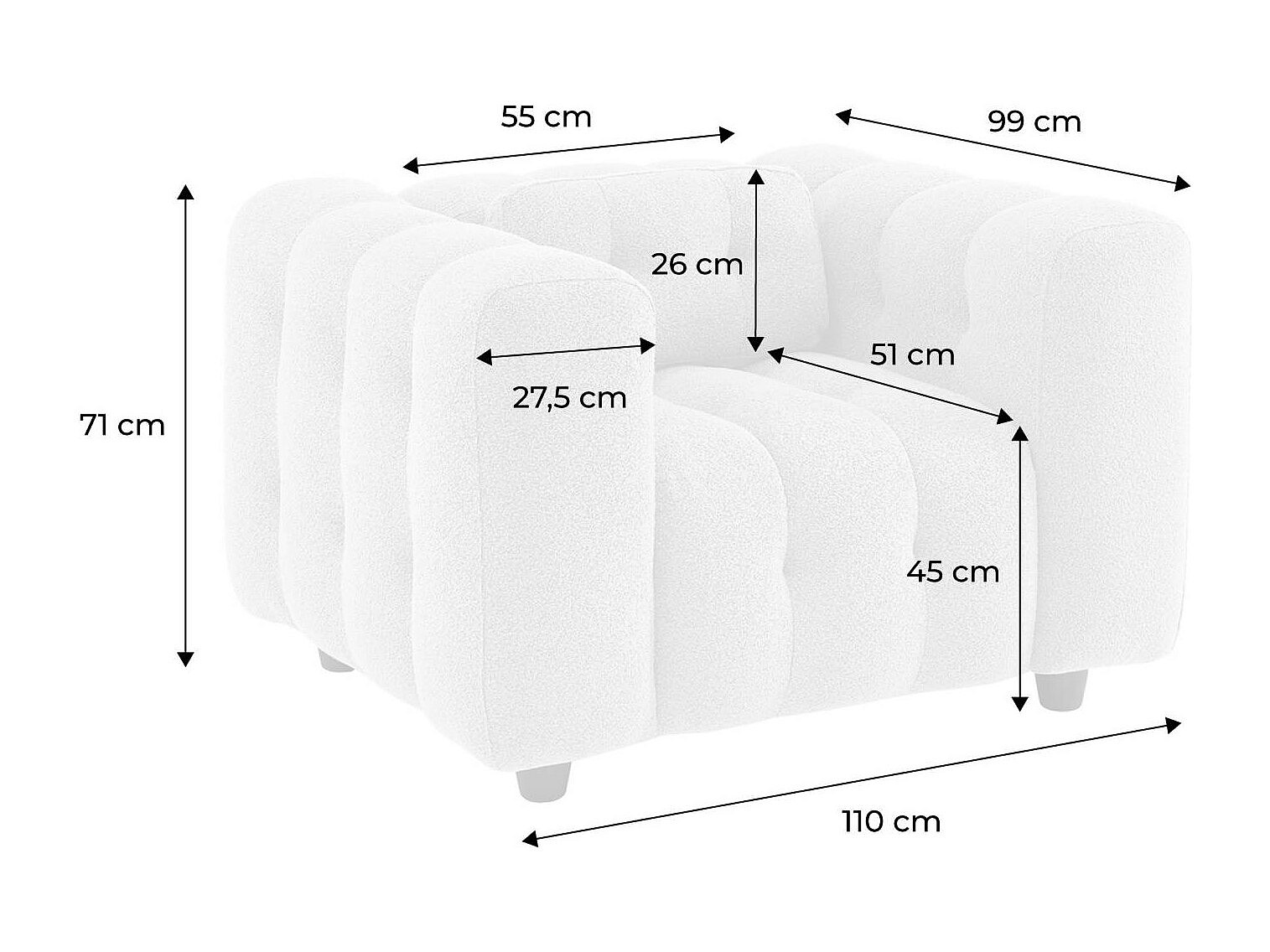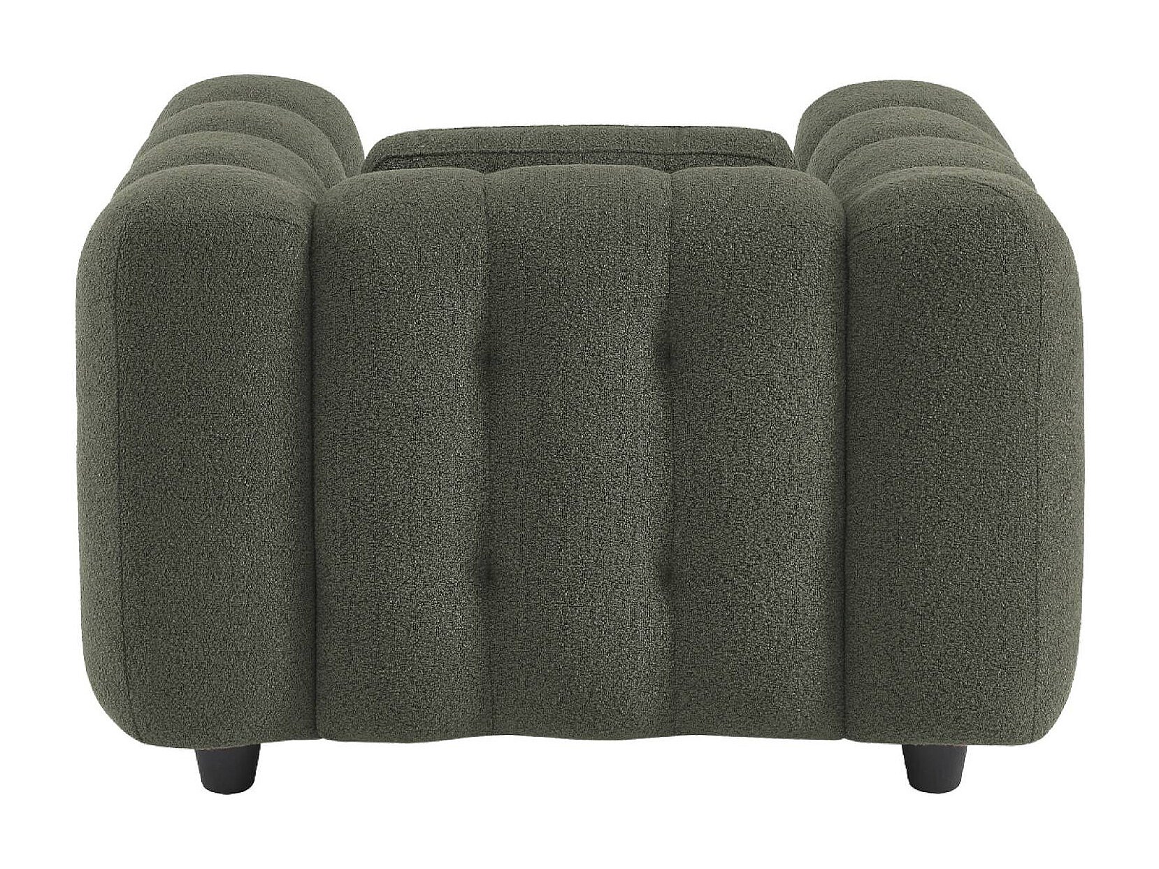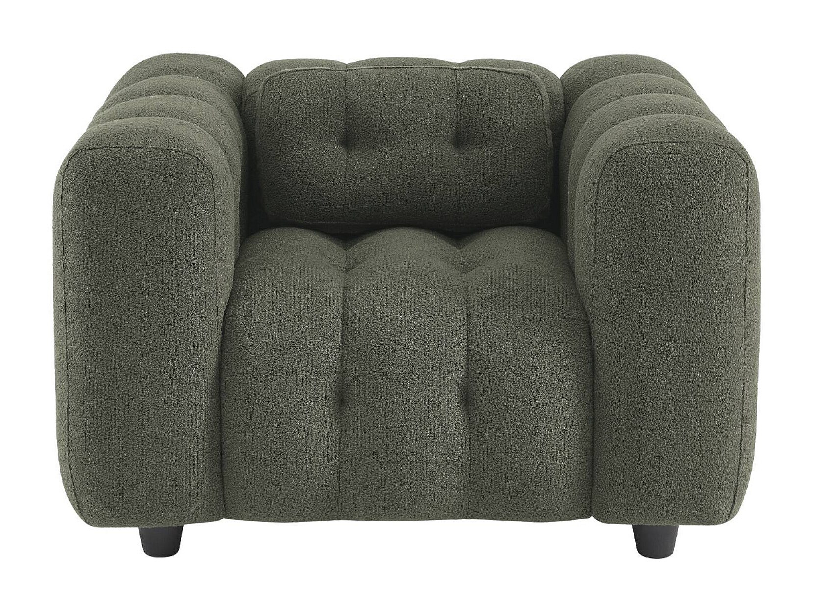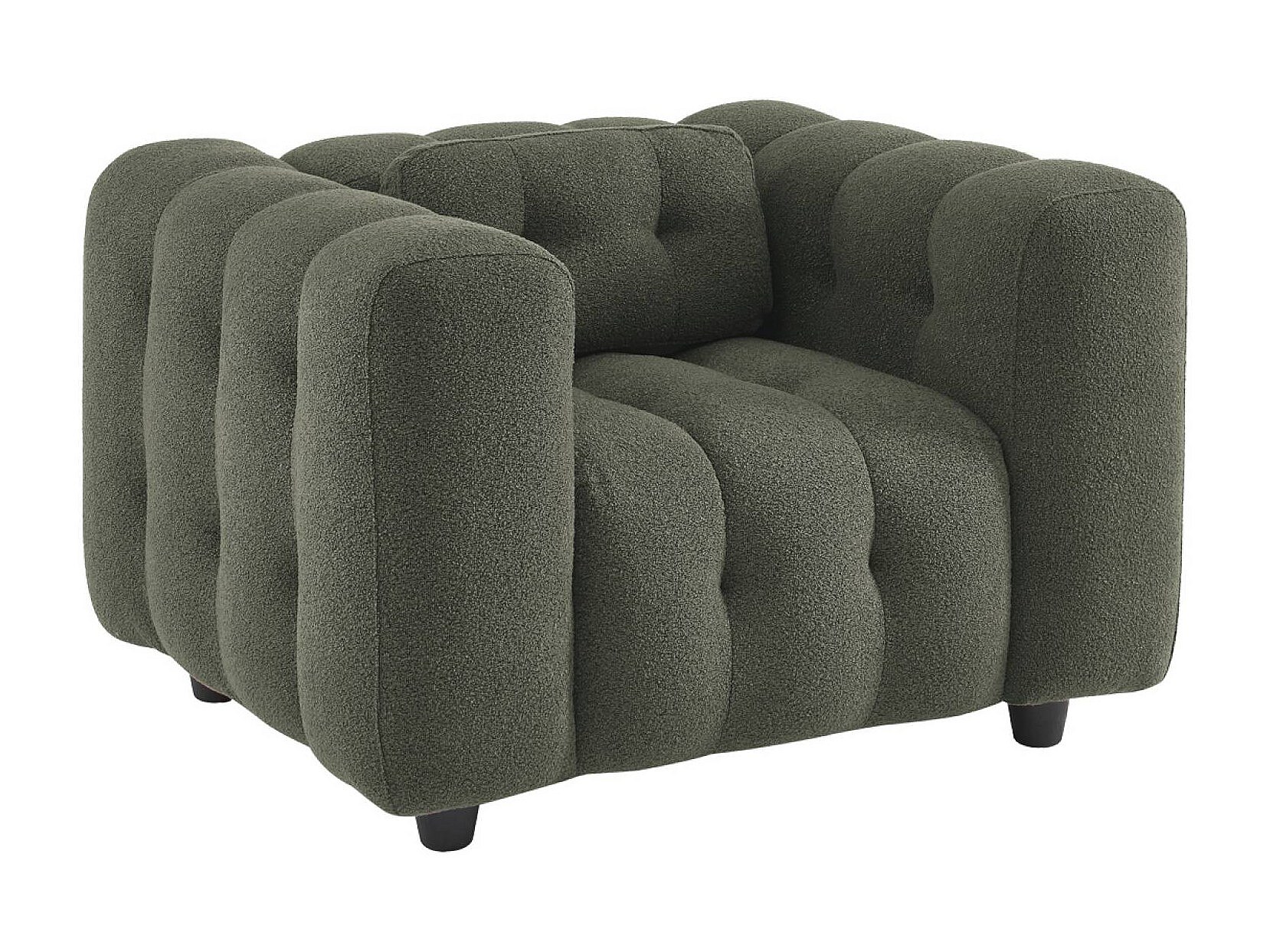 Fauteuil 1 place en bouclette texturée capitonné kaki foncé structure bois d'eucalyptus et contreplaqué
