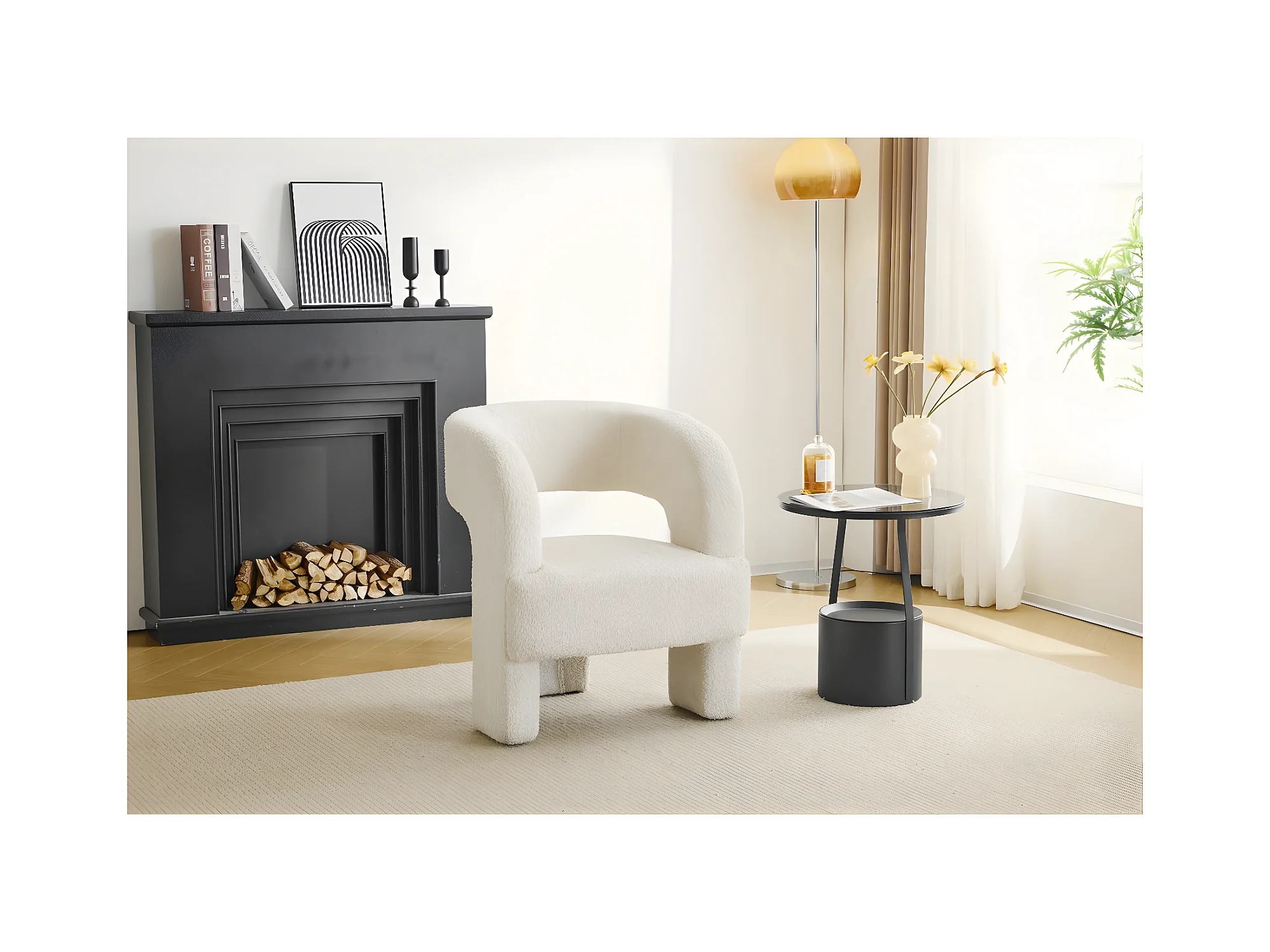 Fauteuil 3 pieds design bouclette "Madison" - Blanc