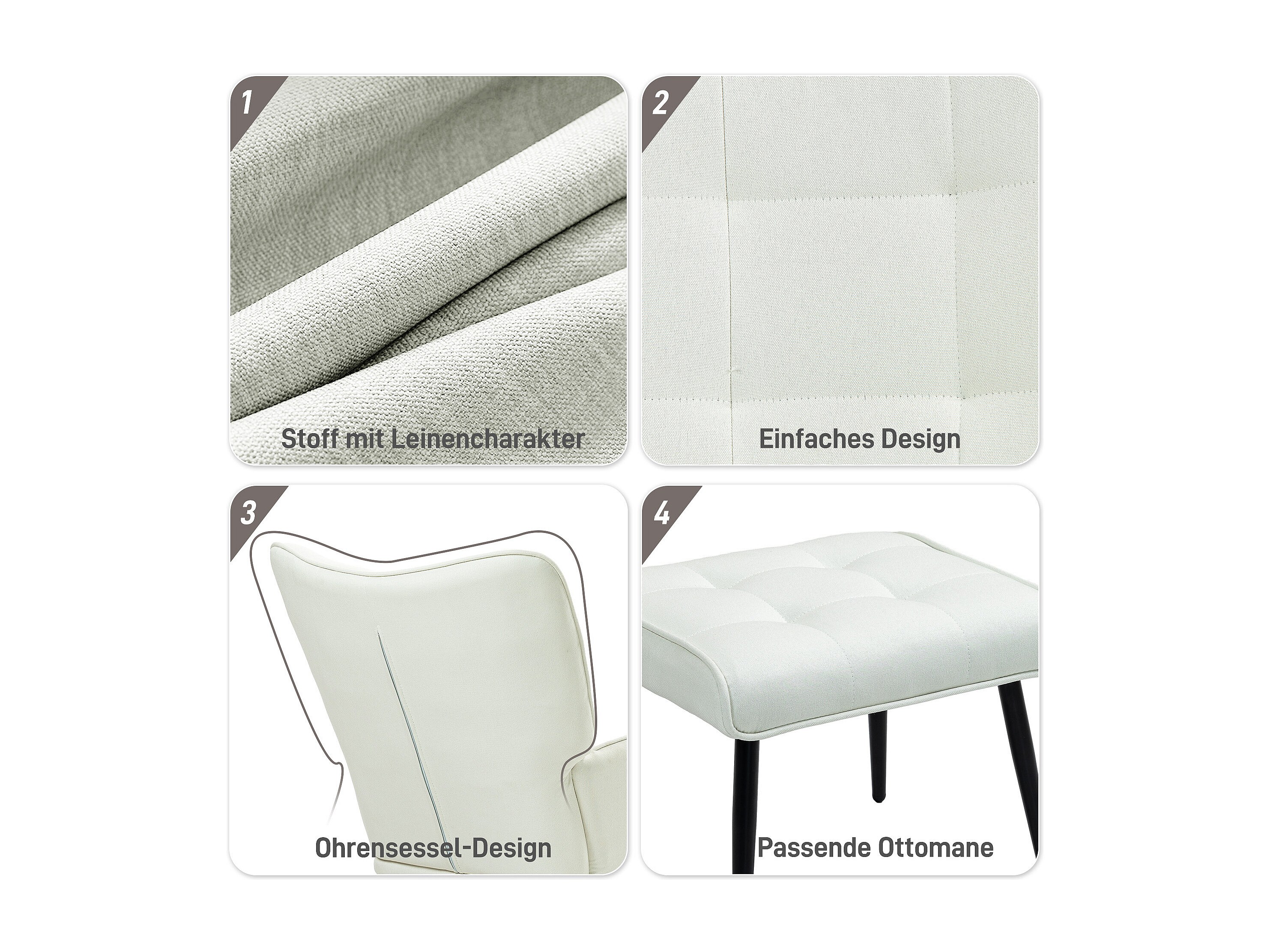 Fauteuil à bascule blanc avec repose-pieds et fauteuil, aspect lin, piètement en bois