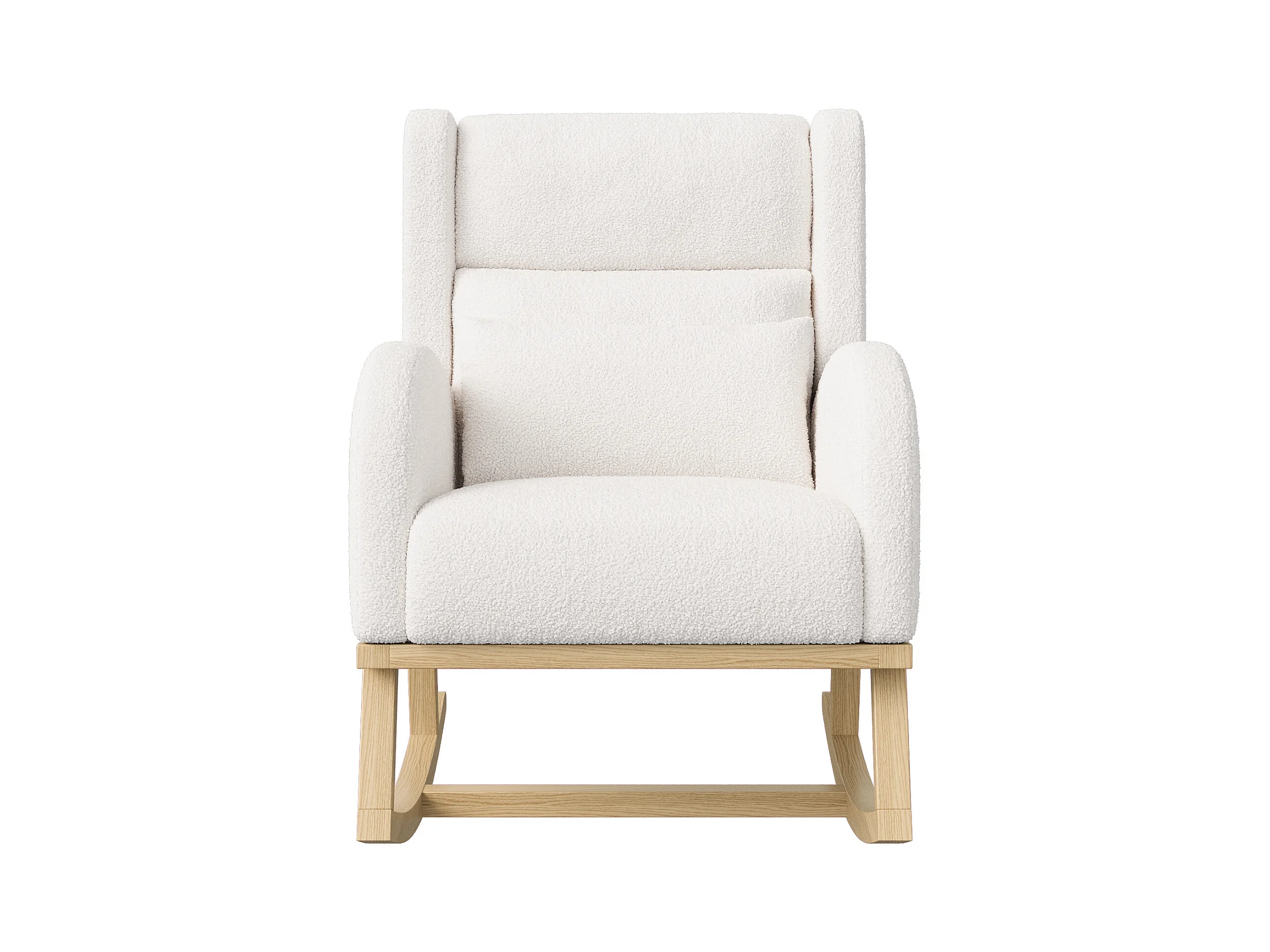 Fauteuil à Bascule en Tissu Bouclé Rembourré avec Support Lombaire et Pieds en Bois, Blanc