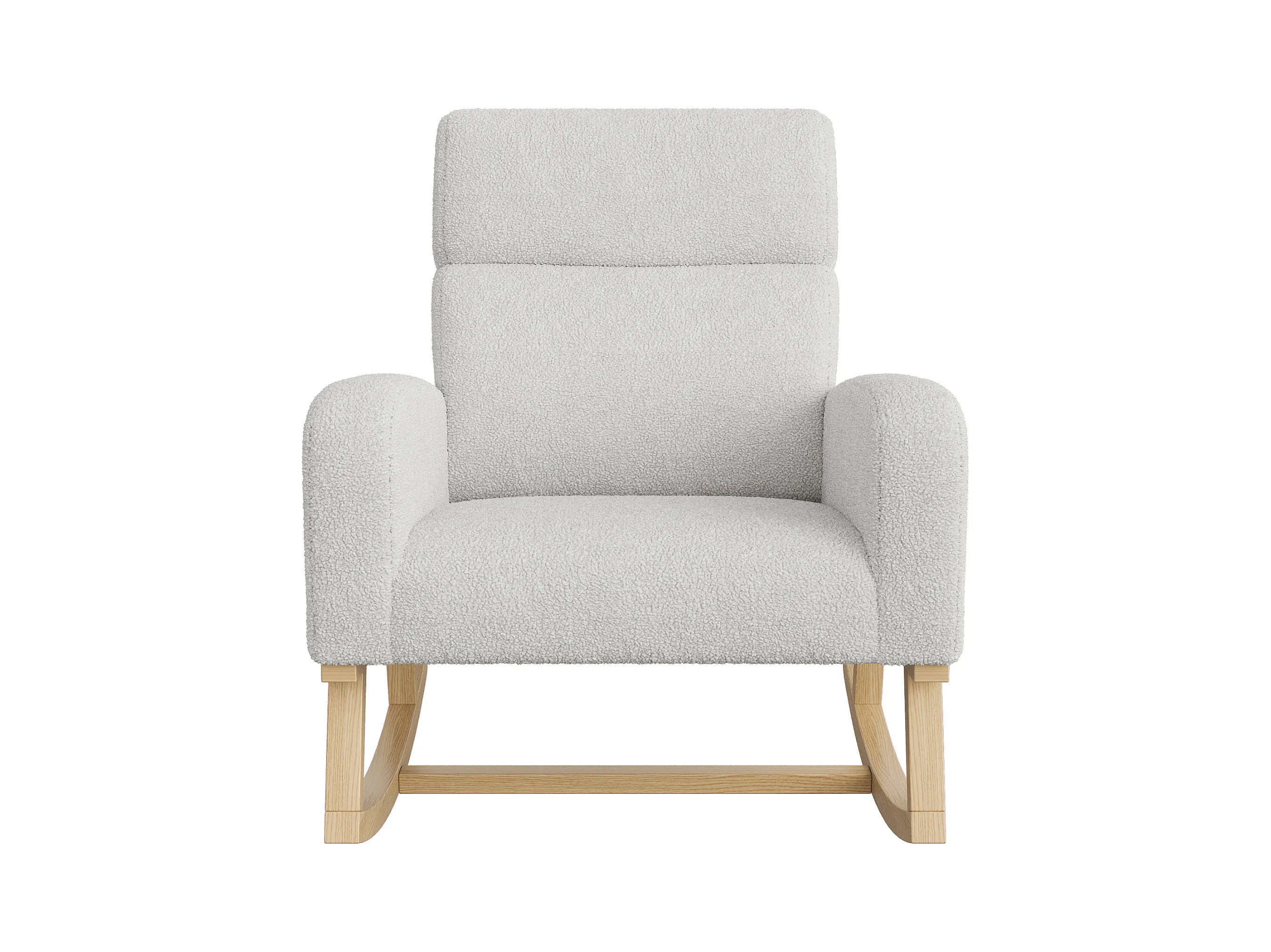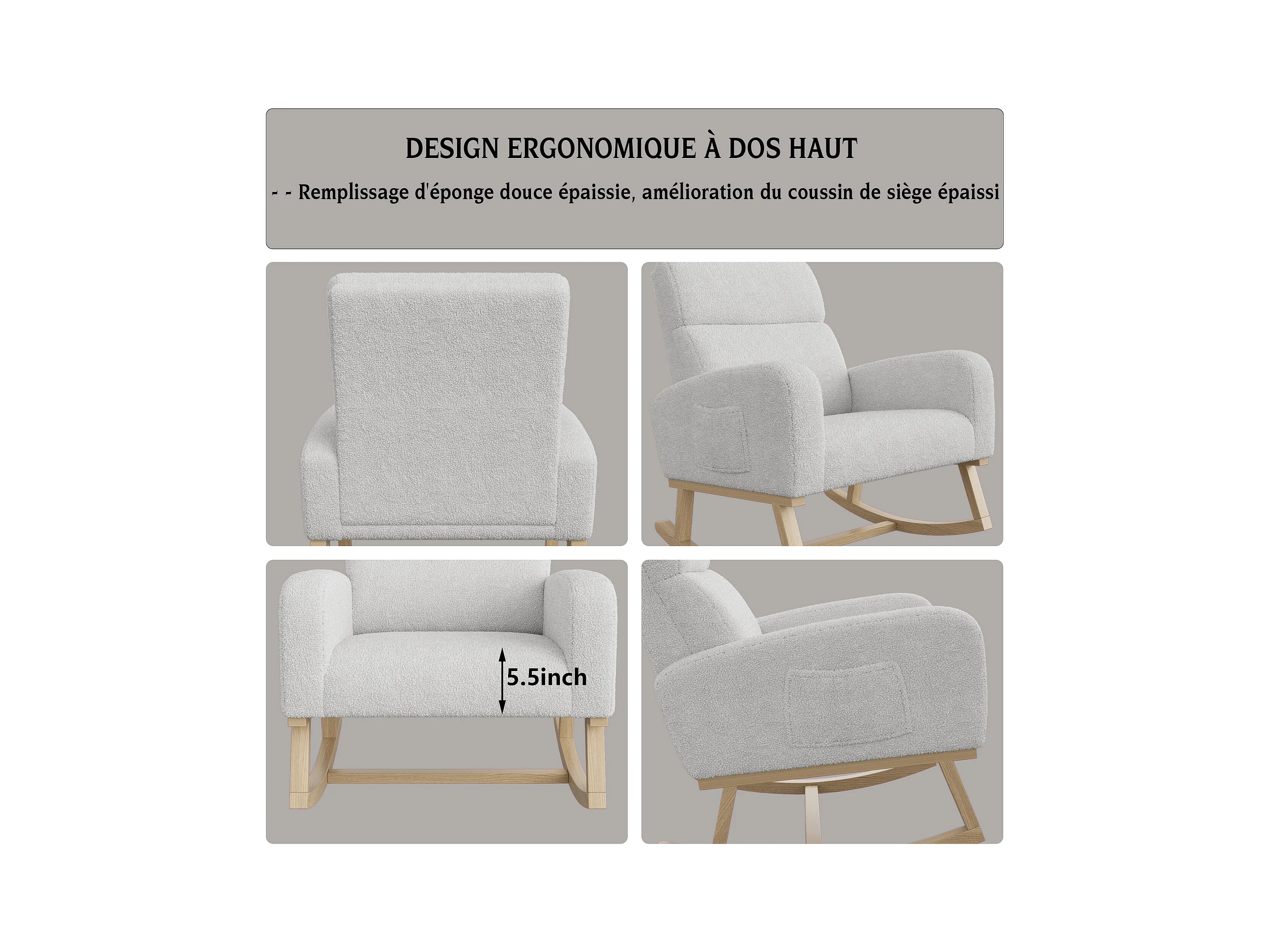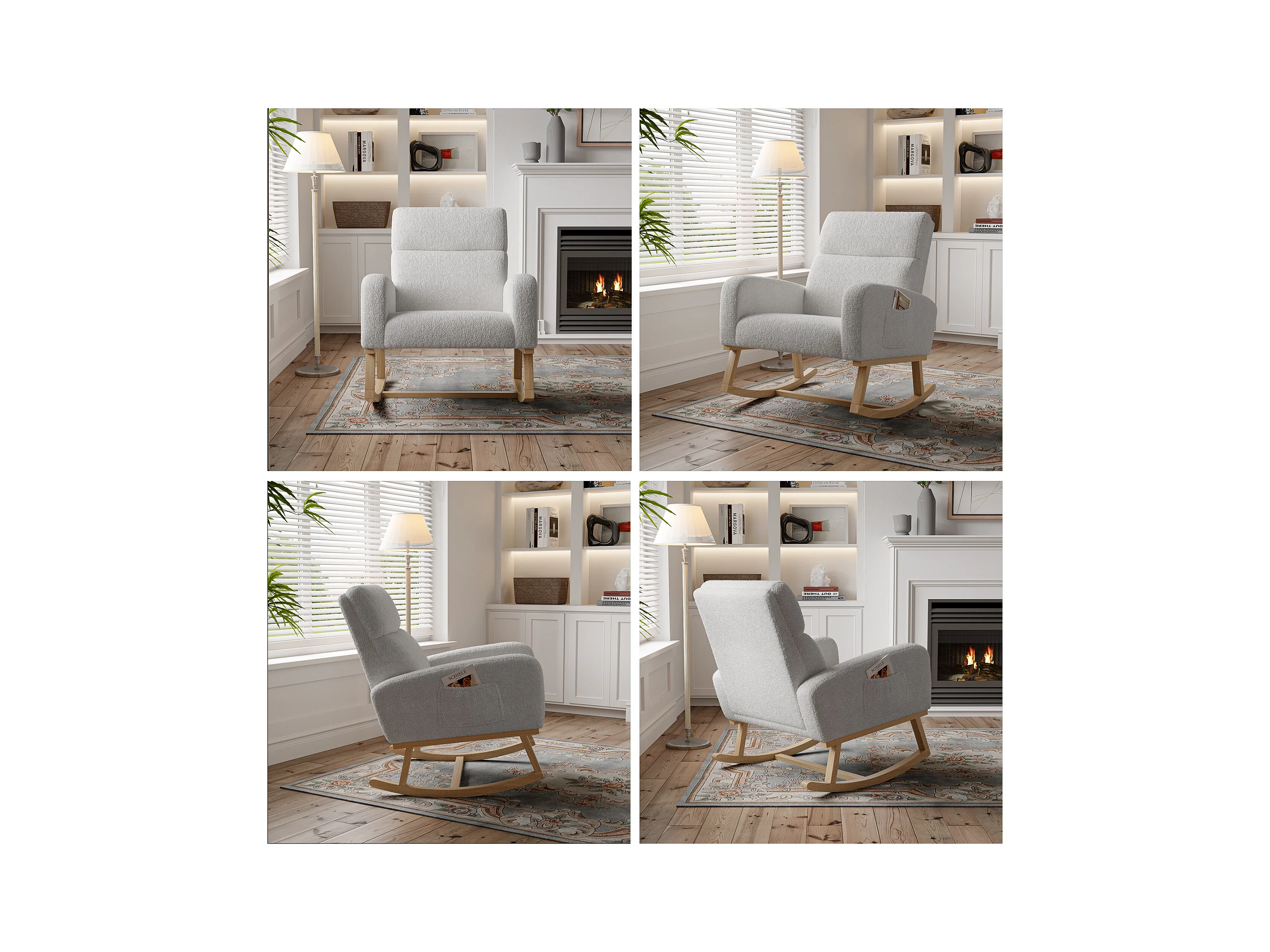 Fauteuil à Bascule, Fauteuil De Relaxation, Avec Poches Et Pieds En Bois,velours Teddy Gris