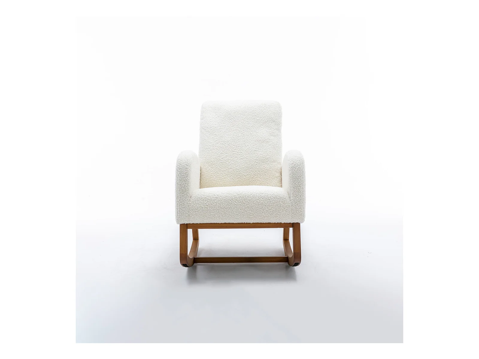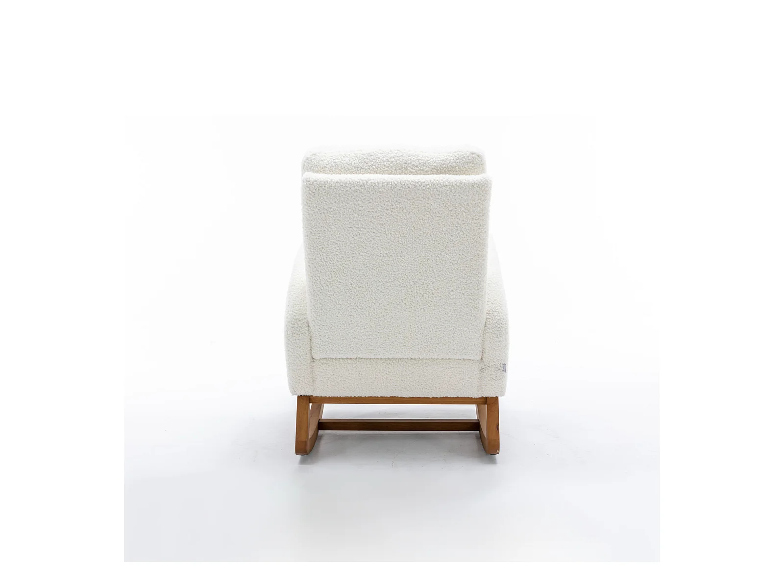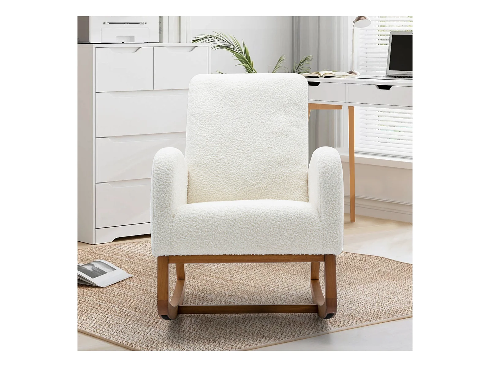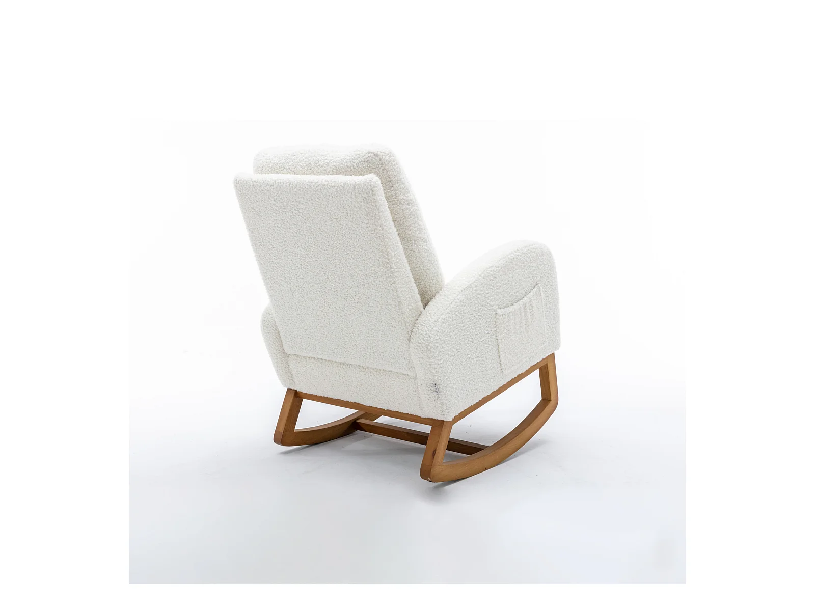 Fauteuil à Bascule - Rocking chair - Dossier Capitonné Pieds en Bois - Blanc