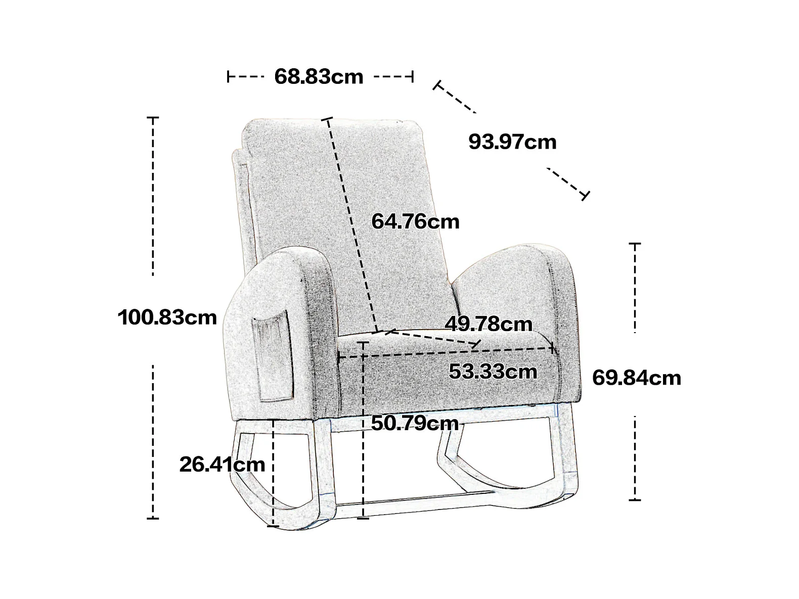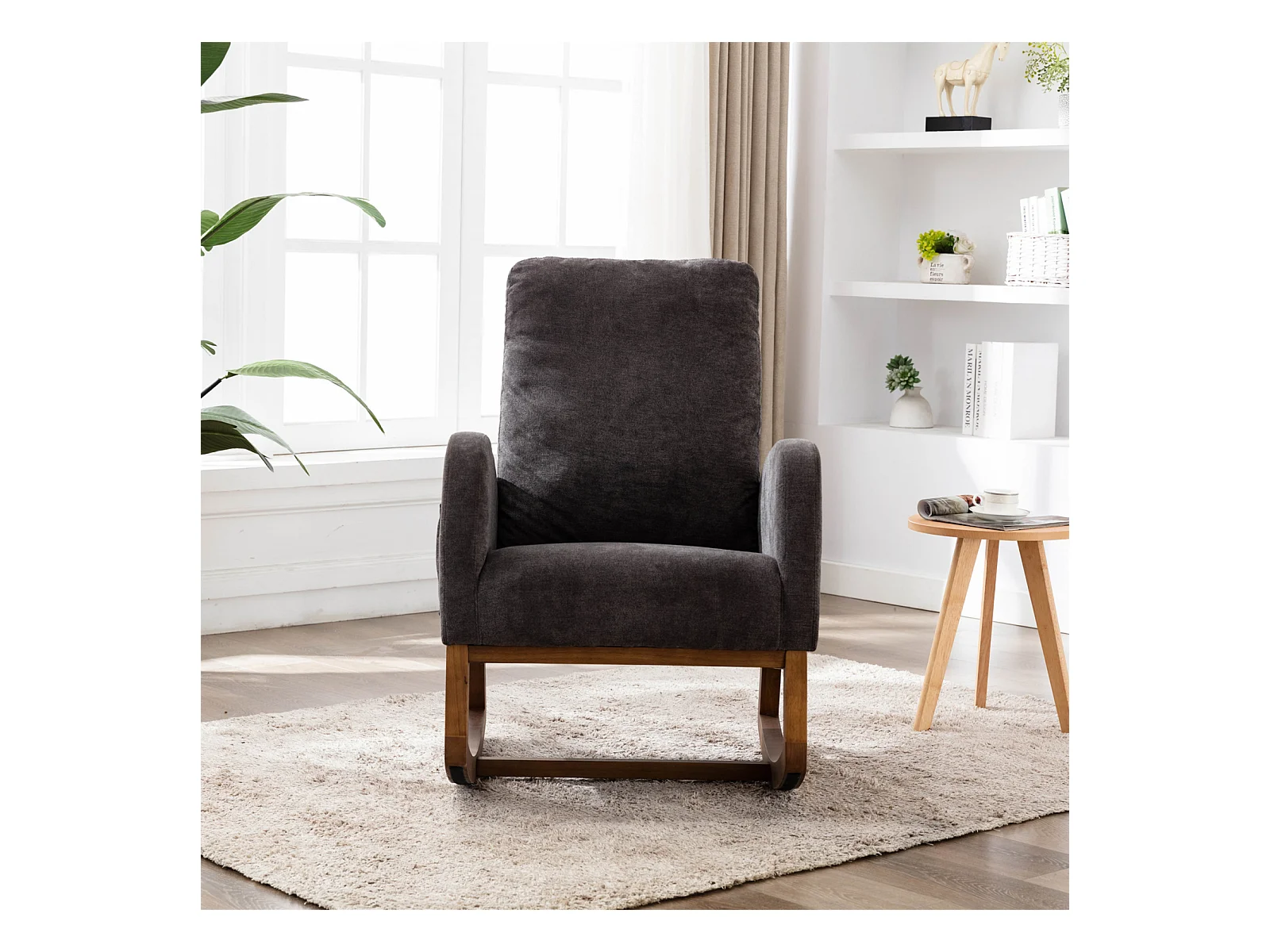 Fauteuil à Bascule - Rocking chair - Dossier Capitonné Pieds en Bois - Marron