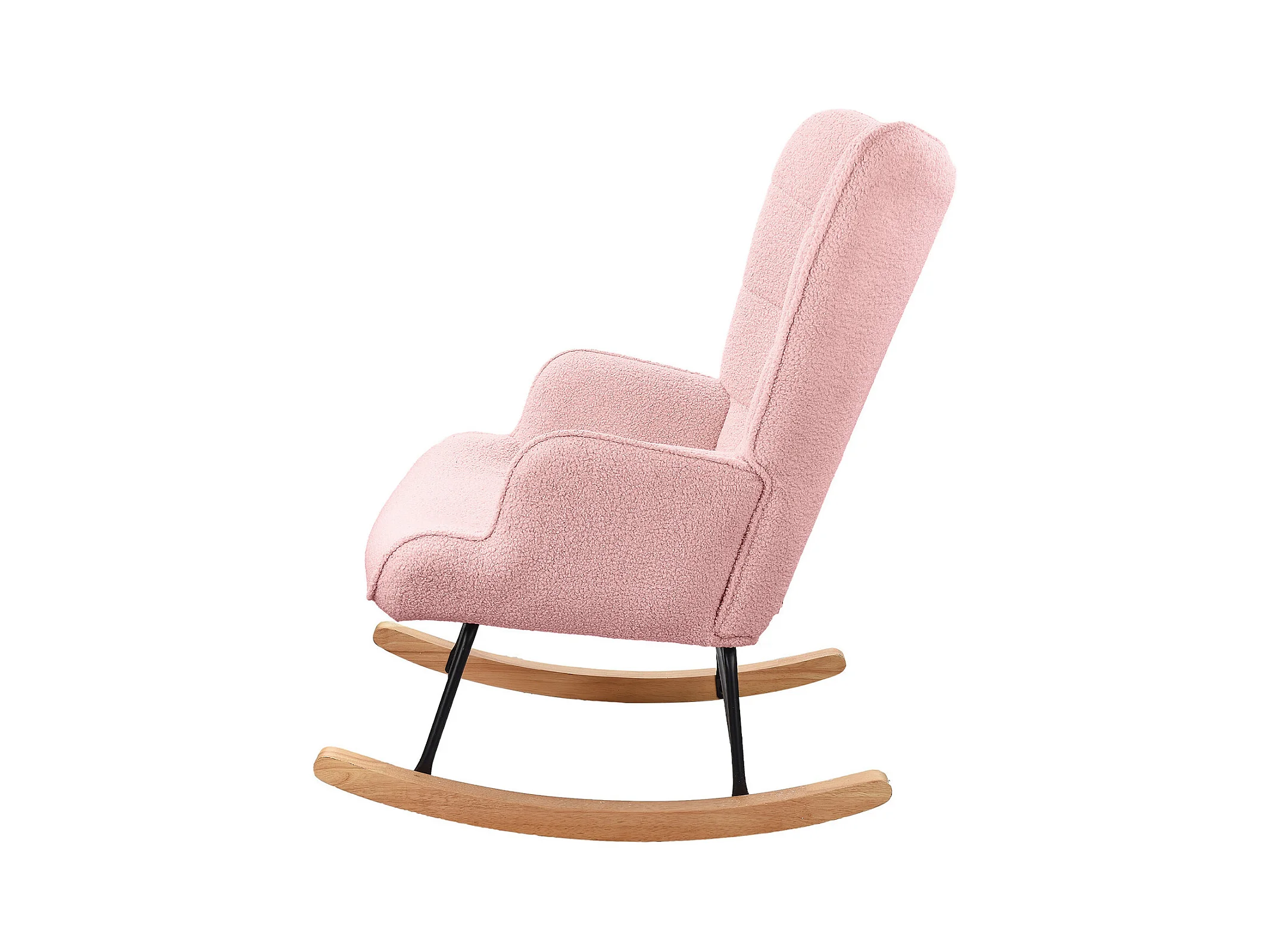 Fauteuil à bascule à oreilles en velours rose bois massif