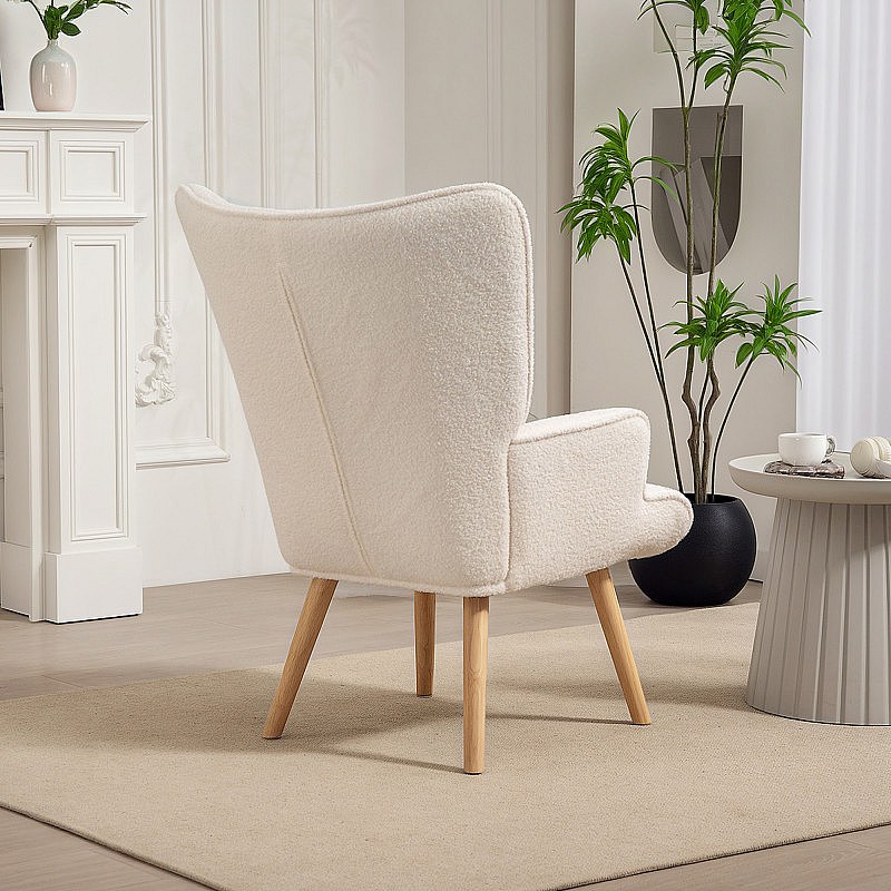 Fauteuil style nordique effet laine bouclée MAUD crème