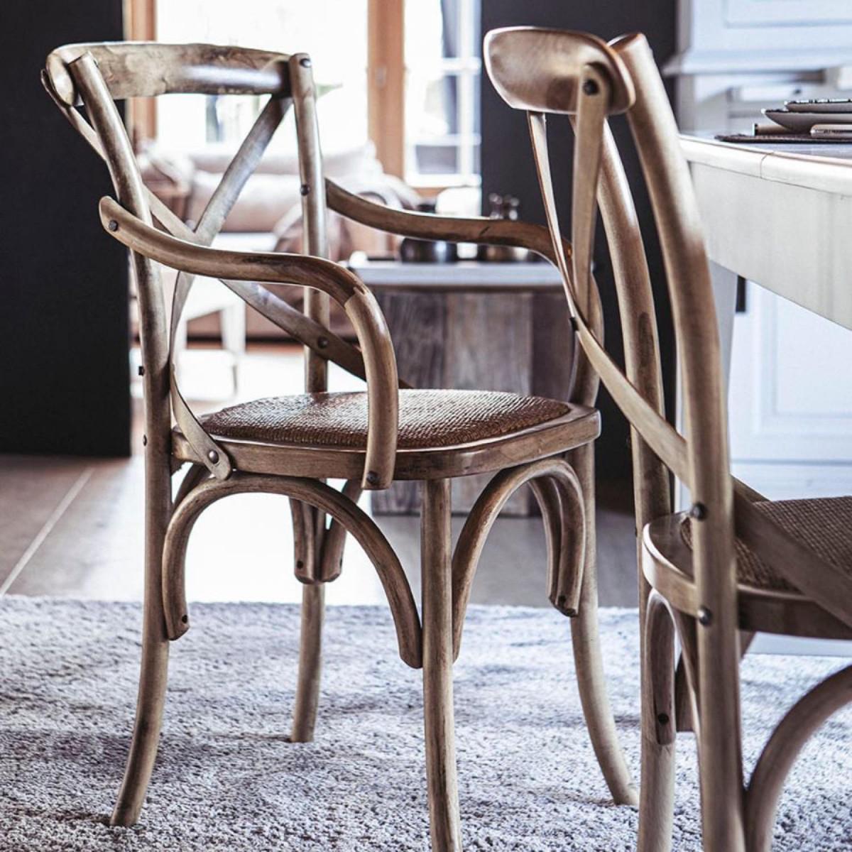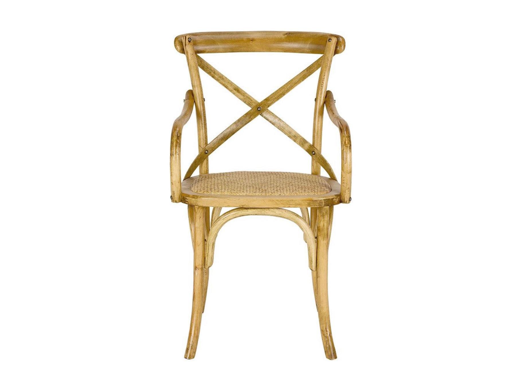 Chaise en bois de Frêne et rotin Landas - Style vintage avec accoudoirs-Couleur Naturel
