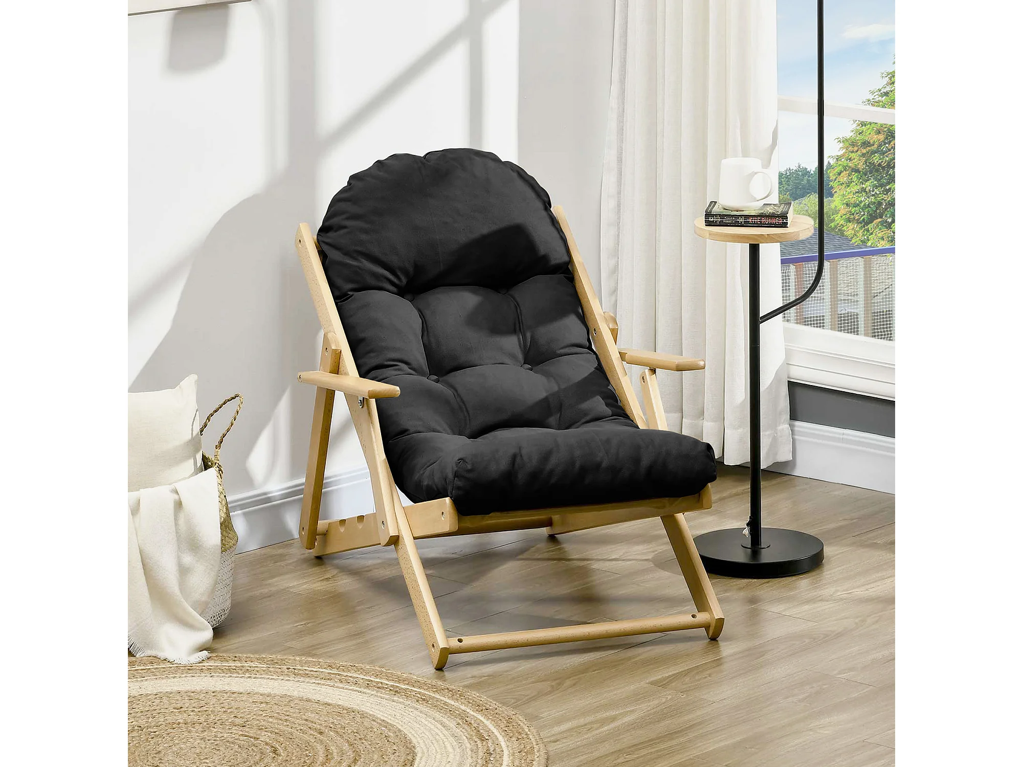 Fauteuil chaise pliable et inclinable en bois grand confort avec coussin capitonné épais - dim. 71I x 89P x 96H cm - noir