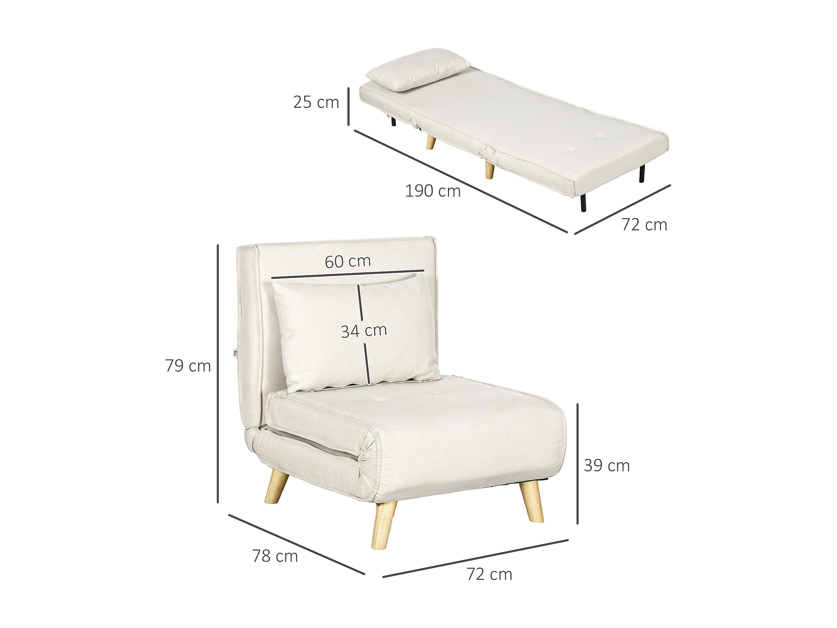 Fauteuil chauffeuse canapé-lit convertible 1 place - coussin inclus - style scandinave tissu beige clair