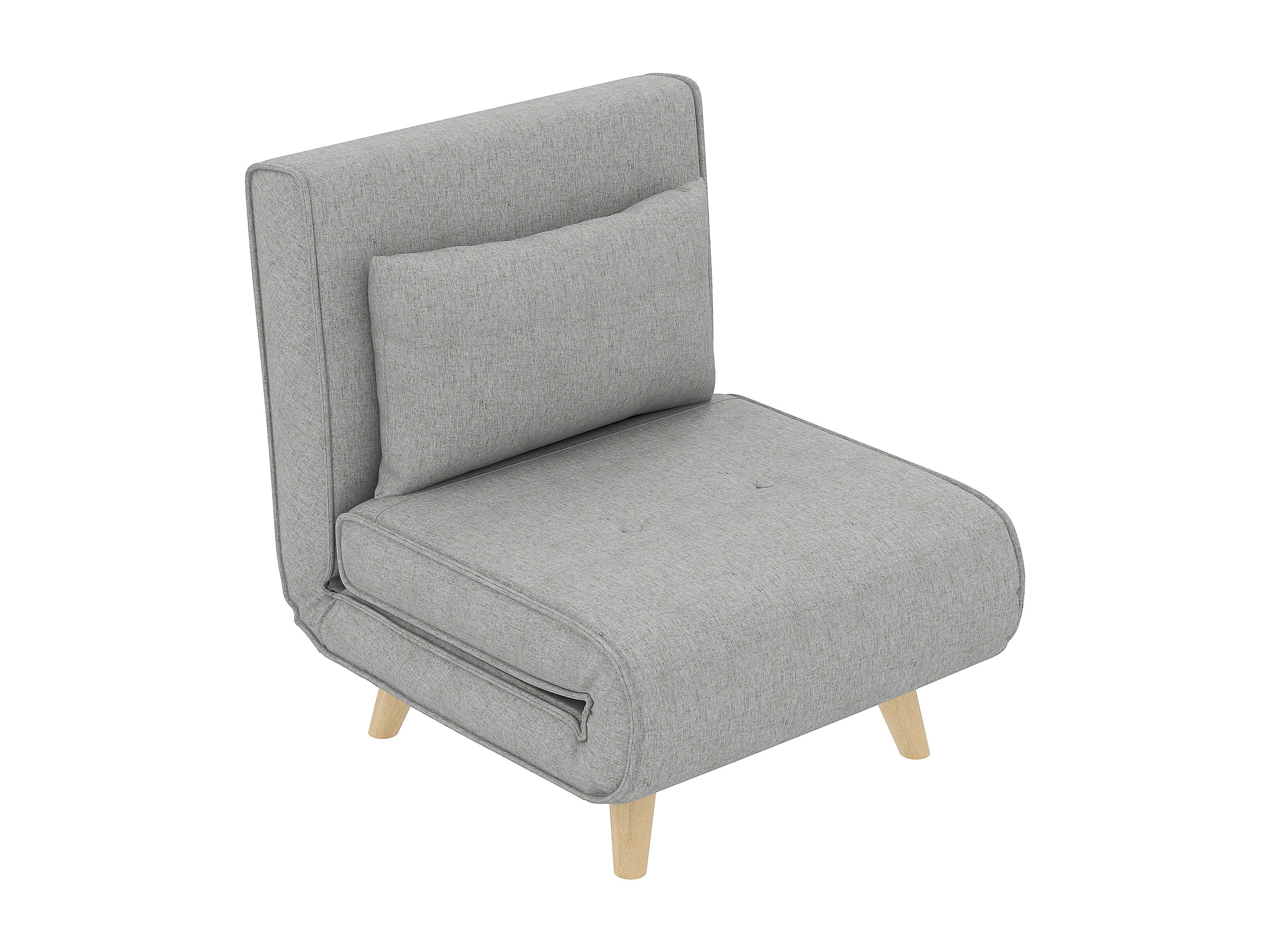 Fauteuil chauffeuse canapé-lit convertible 1 place - coussin inclus - style scandinave tissu gris clair