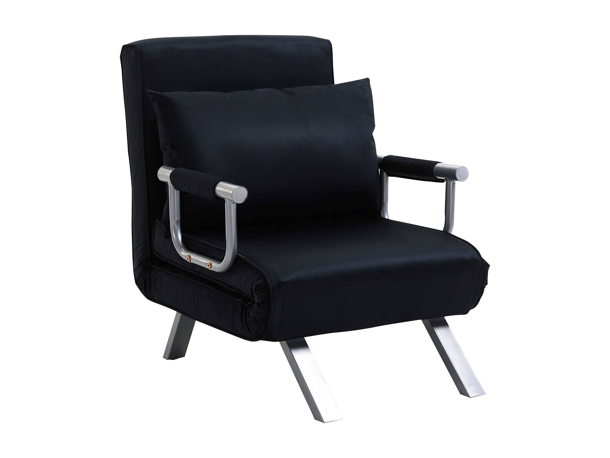 Fauteuil chauffeuse canapé-lit convertible 1 place déhoussable grand confort coussin pieds accoudoirs métal suède noir