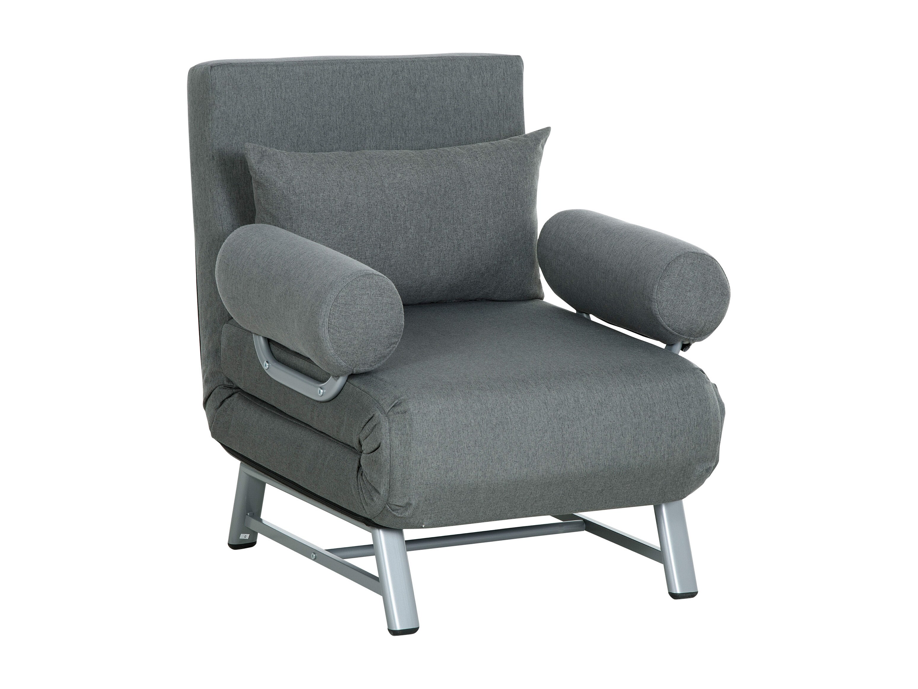 Fauteuil convertible 3 en 1 chauffeuse lit 1 place avec coussin gris