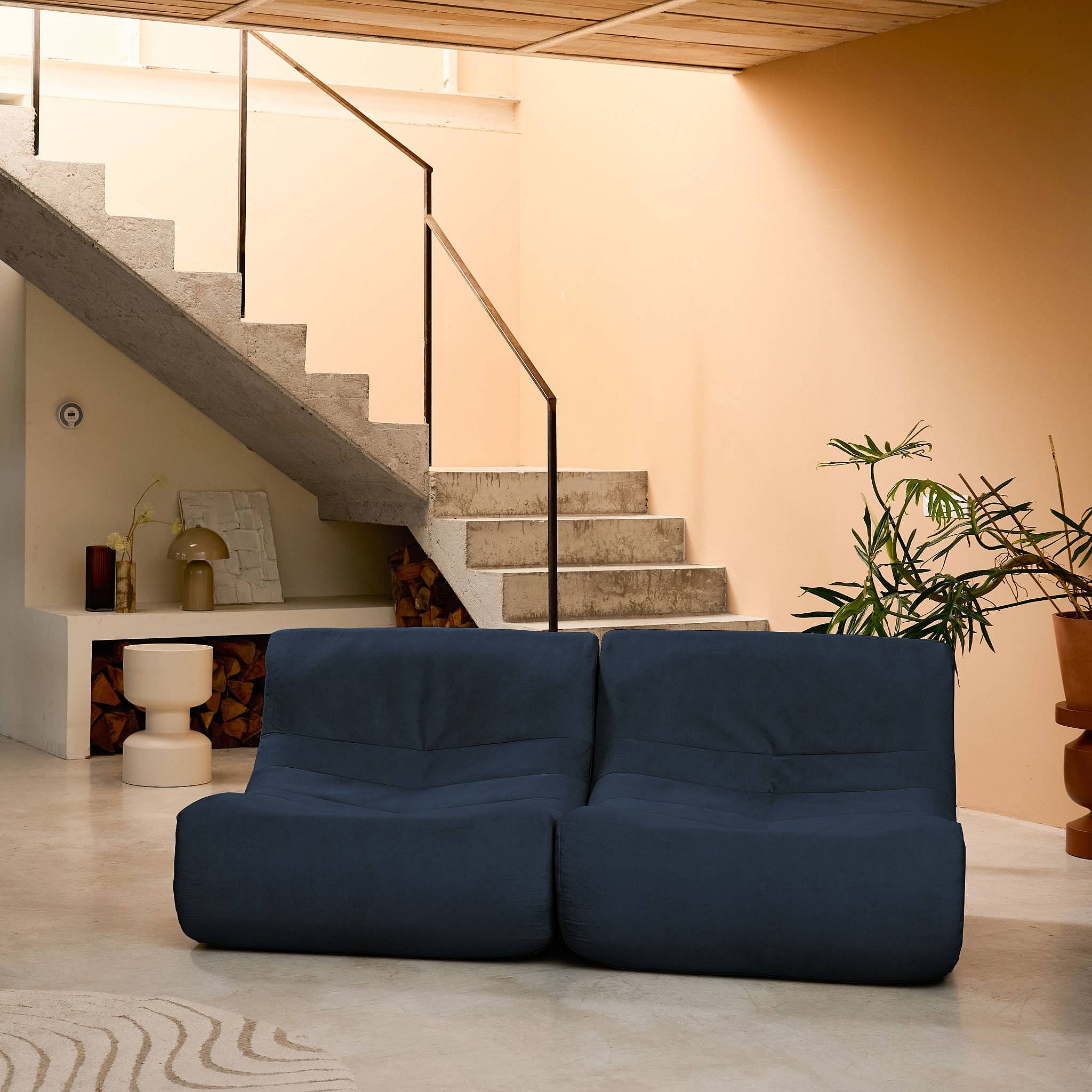 Fauteuil chauffeuse en velours style contemporain 2 places bleu foncé