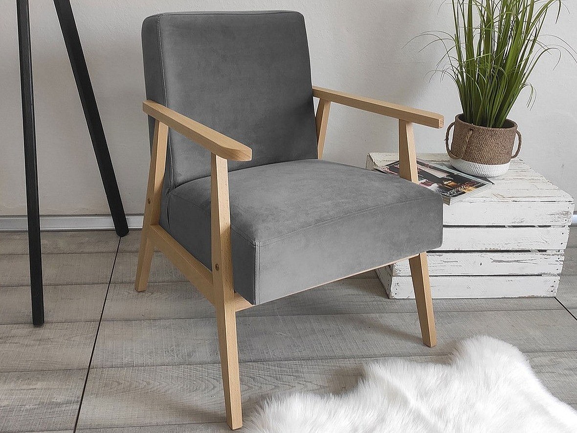 Fauteuil Clovis 100, Gris, 76x59x67cm, Tapisserie, Pieds: Bois