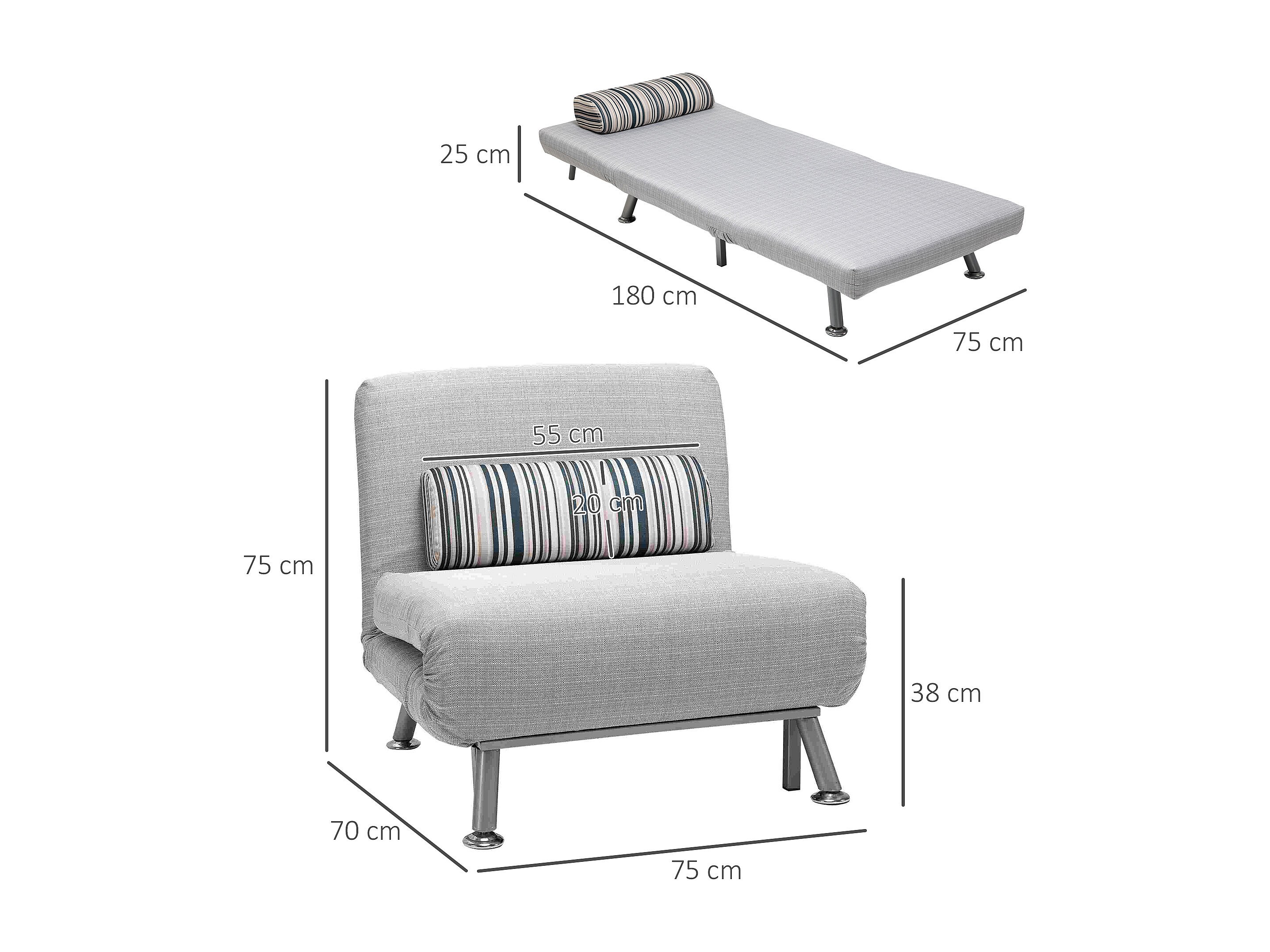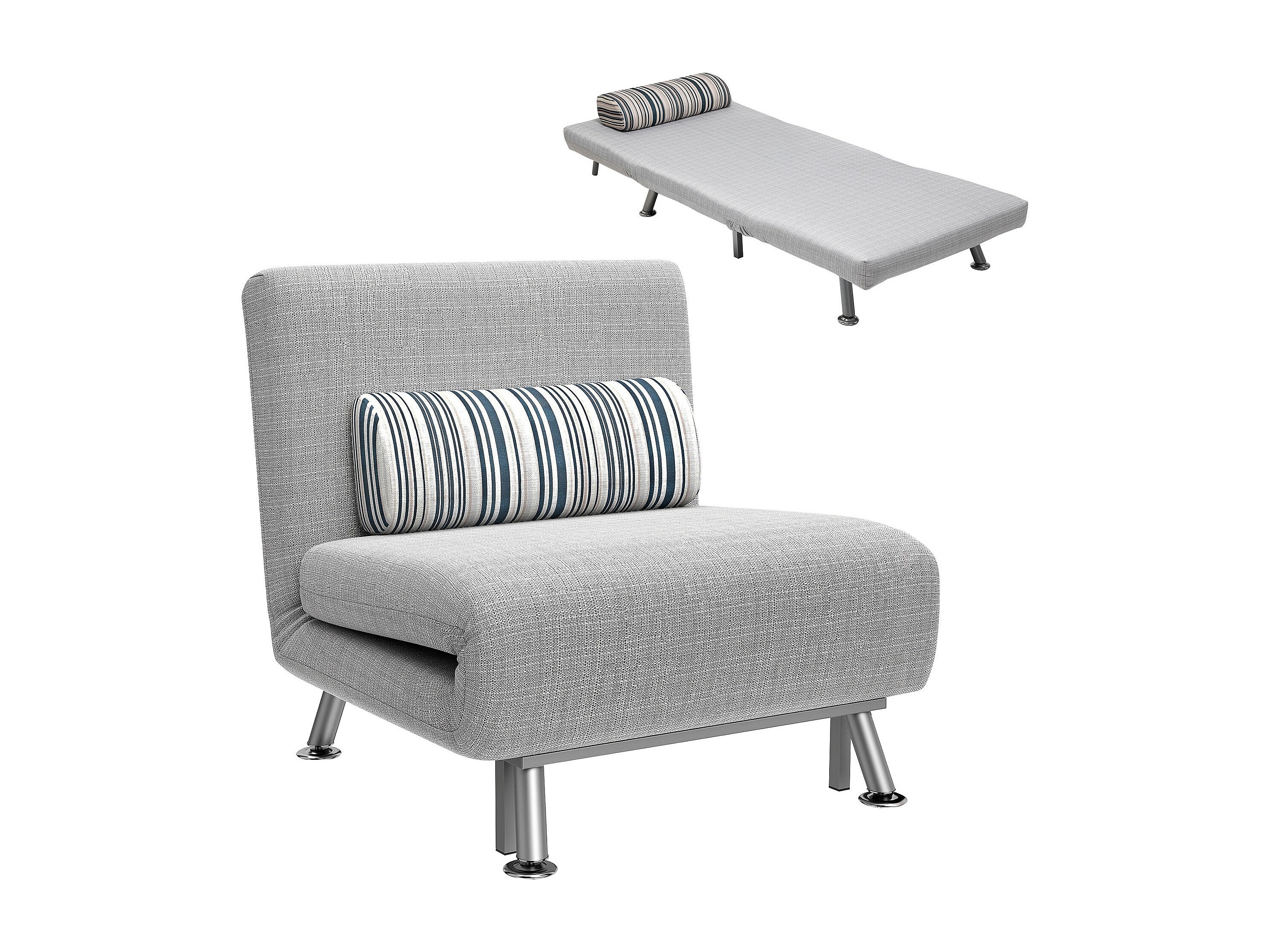Fauteuil convertible 3 en 1 chauffeuse lit 1 place avec coussin gris