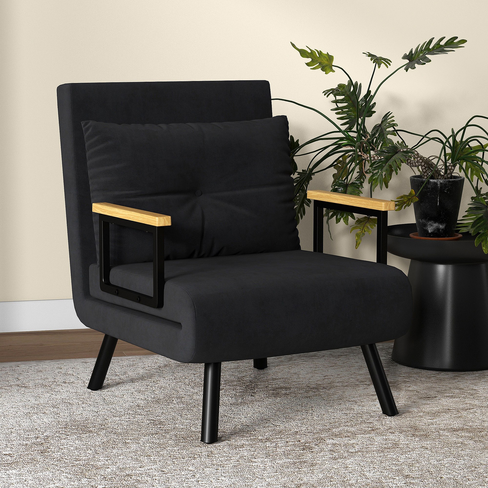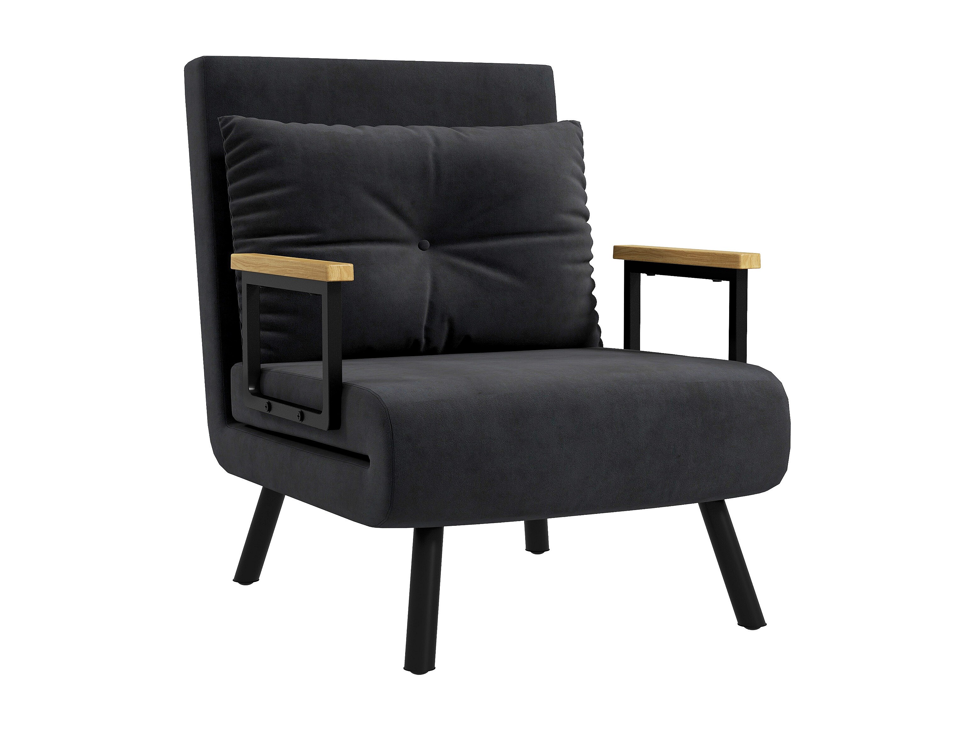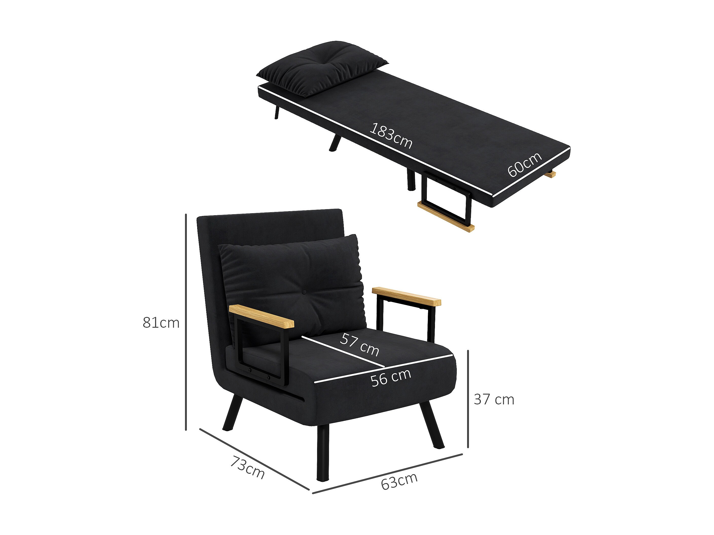 Fauteuil convertible 3 en 1 chauffeuse lit dossier réglable coussin accoudoirs bois velours noir