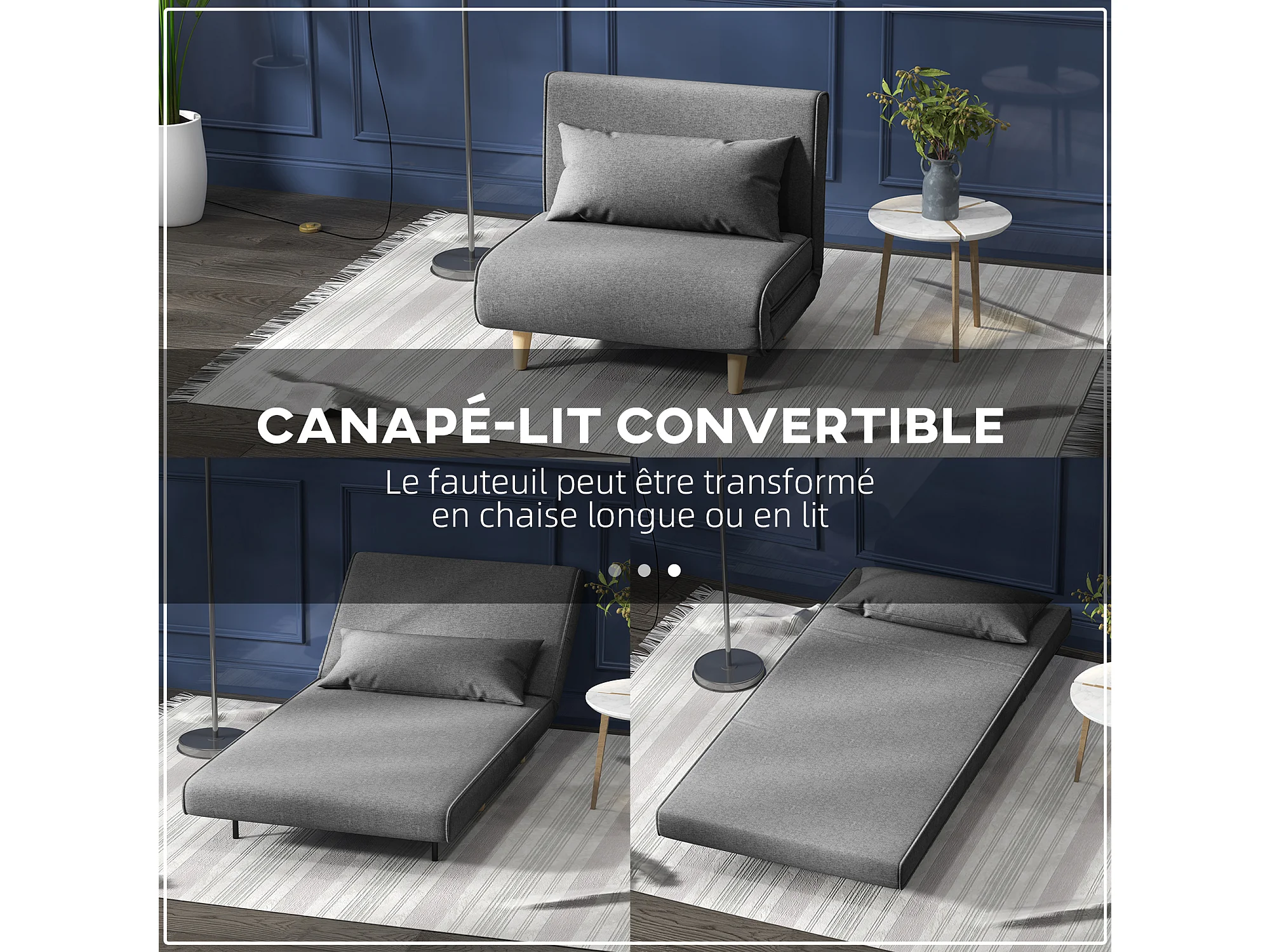 Fauteuil convertible chauffeuse style nordique dossier réglable coussin inclus gris