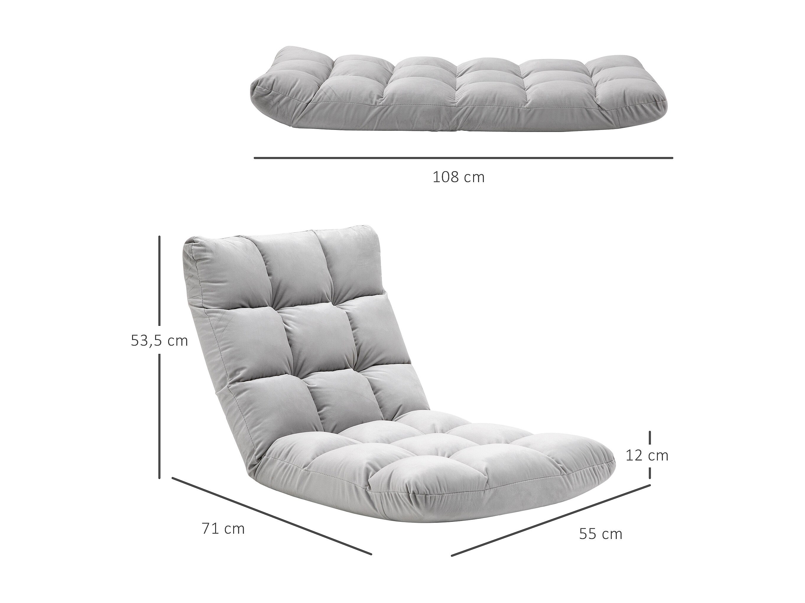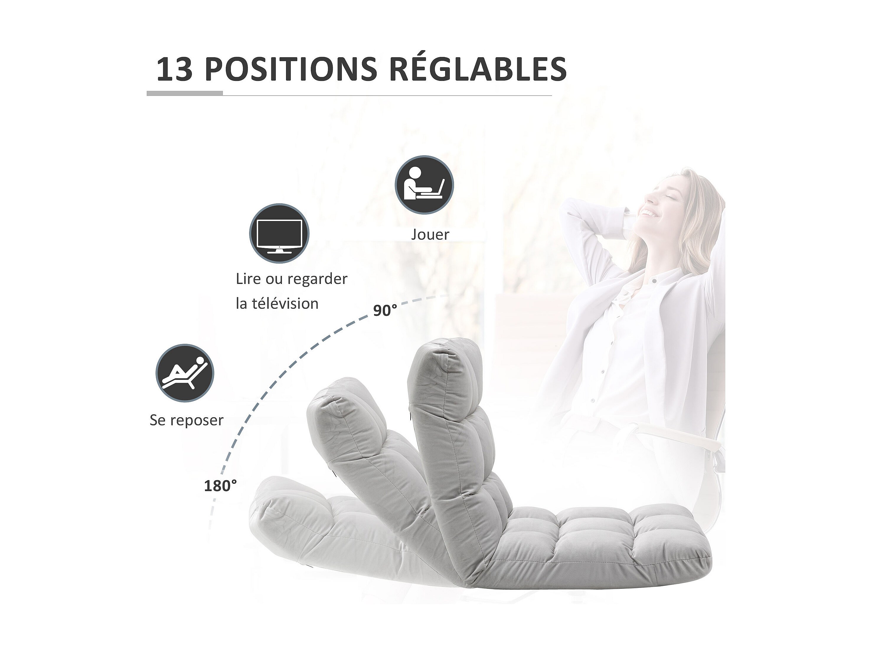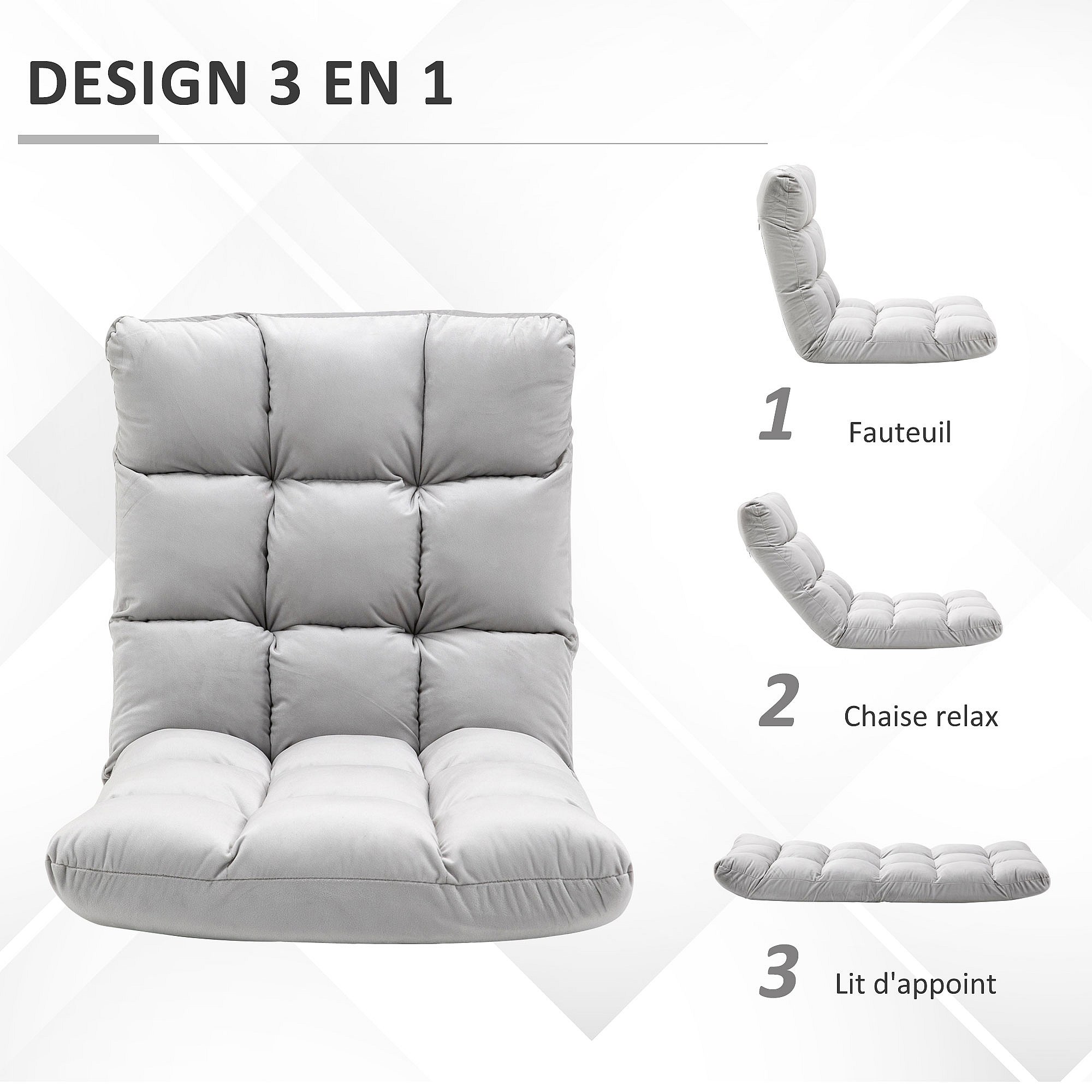 Fauteuil convertible fauteuil paresseux grand confort inclinaison dossier multipositions 90°-180° flanelle polyester capitonné gris clair