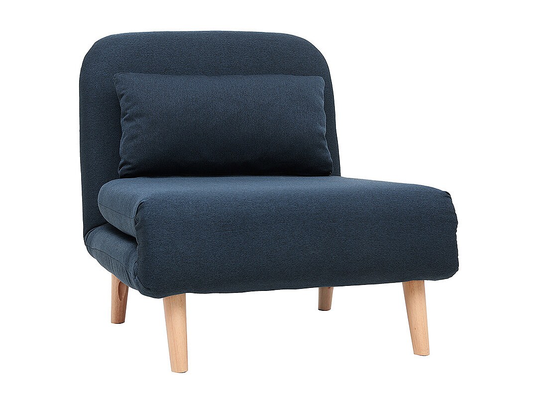 Fauteuil convertible scandinave en tissu bleu foncé et bois clair AMIKO