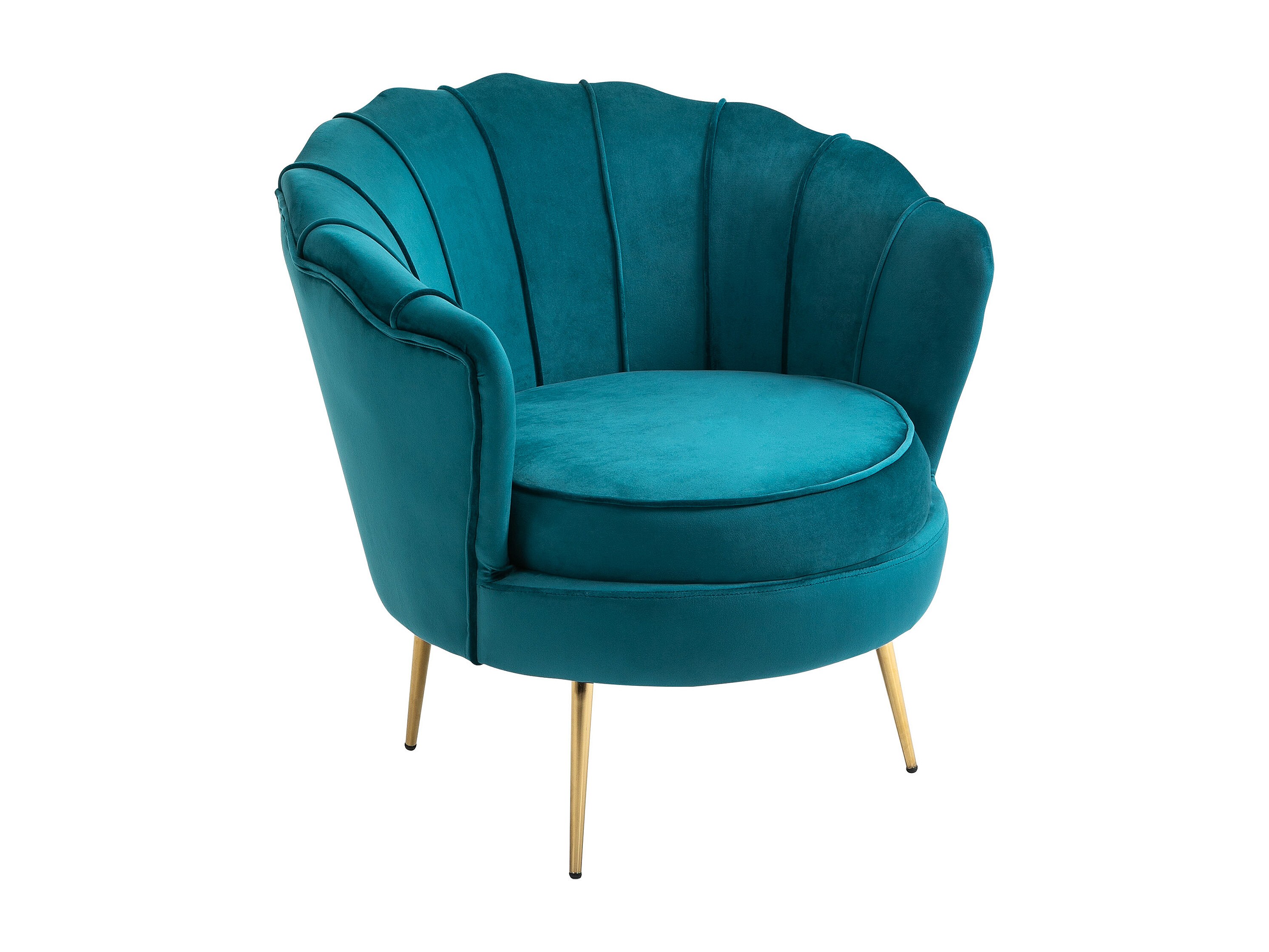 Fauteuil coquillage fauteuil design dim. 79L x 77l x 77H cm pieds dorés effilés velours bleu canard